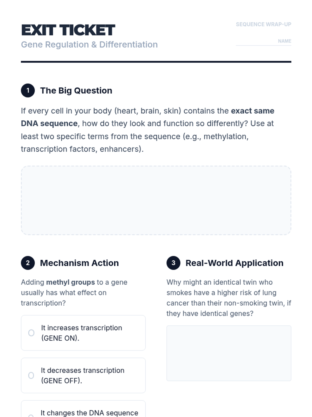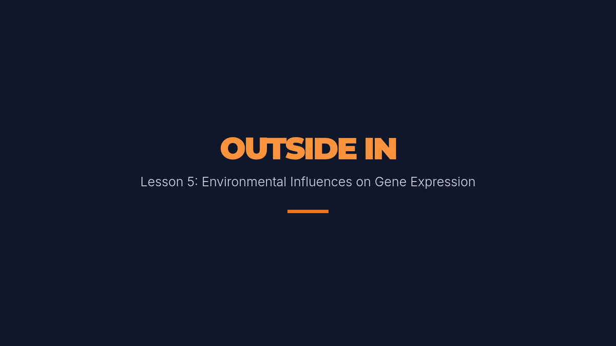 The final lesson analyzes how external factors like stress, diet, and toxins influence gene expression, using twin studies to explore the interaction between nature and nurture.