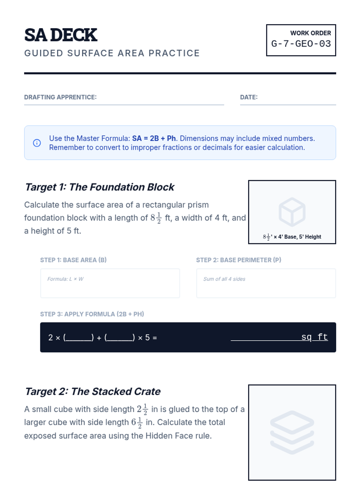 A comprehensive 90-minute lesson on transforming linear equations into slope-intercept form ($y = mx + b$), designed for Algebra I students and easy delivery by non-math teachers. Includes visual slides, a detailed facilitator guide, and extensive practice with error analysis.