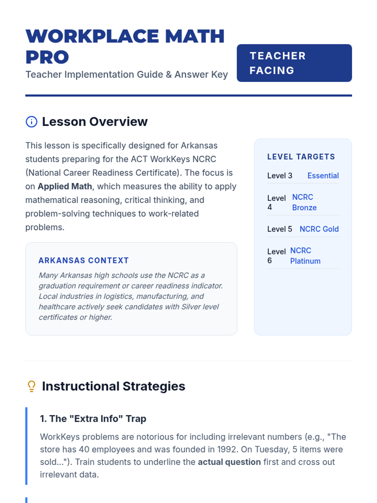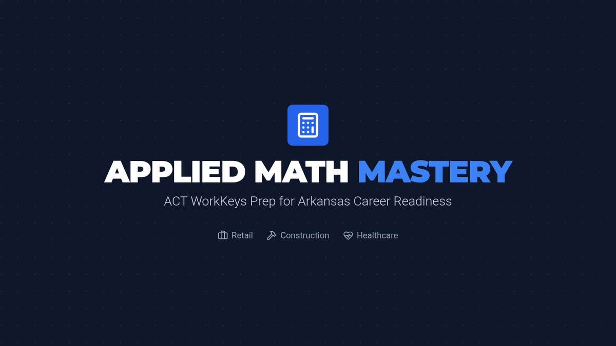 An intensive test prep lesson covering core WorkKeys concepts including percentages, ratios, and unit conversions through the lens of Arkansas career pathways.