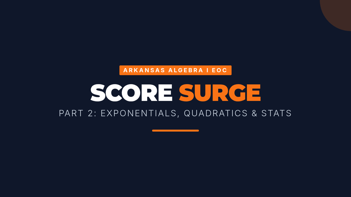 A high-intensity EOC preparation lesson focused on mastering exponential functions, quadratic expressions, and data statistics for the Arkansas Algebra I state exam.