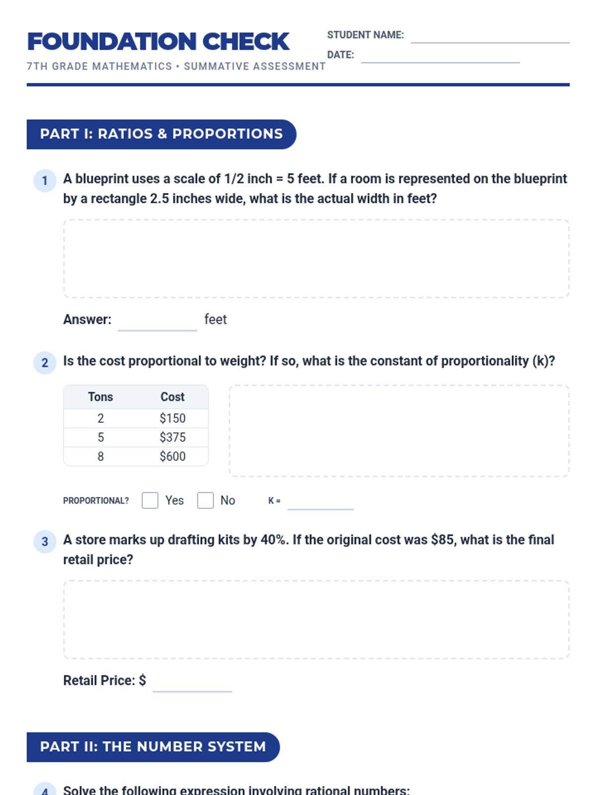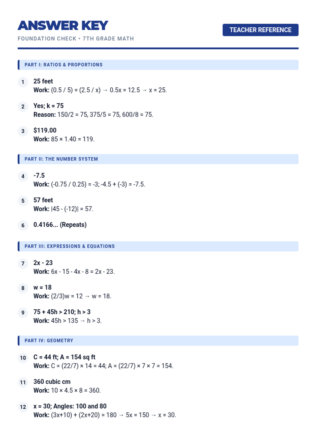 A comprehensive assessment and review lesson focusing on 7th-grade mathematical logic and reasoning across all core domains.