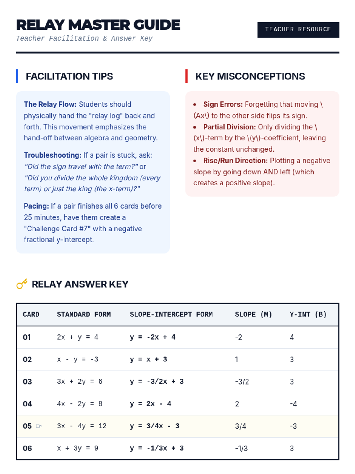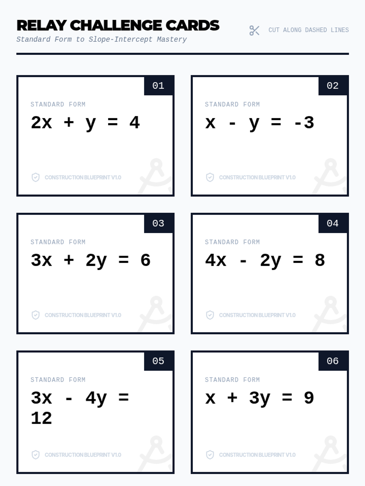 A high-energy lesson where students work in pairs to convert equations from Standard Form to Slope-Intercept Form and graph the results, emphasizing troubleshooting and collaborative problem-solving.