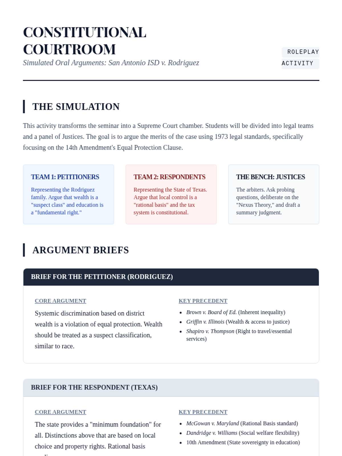 This lesson explores the landmark California Supreme Court case Serrano v. Priest (1971), which challenged the constitutionality of using local property taxes to fund public schools. Students will analyze the legal arguments for educational equity and the long-term impact on school finance in California.
