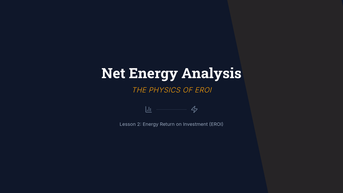 Detailed analysis of Energy Return on Investment (EROI), calculating the net energy gain of various sources and evaluating the energetic limits of societal complexity.
