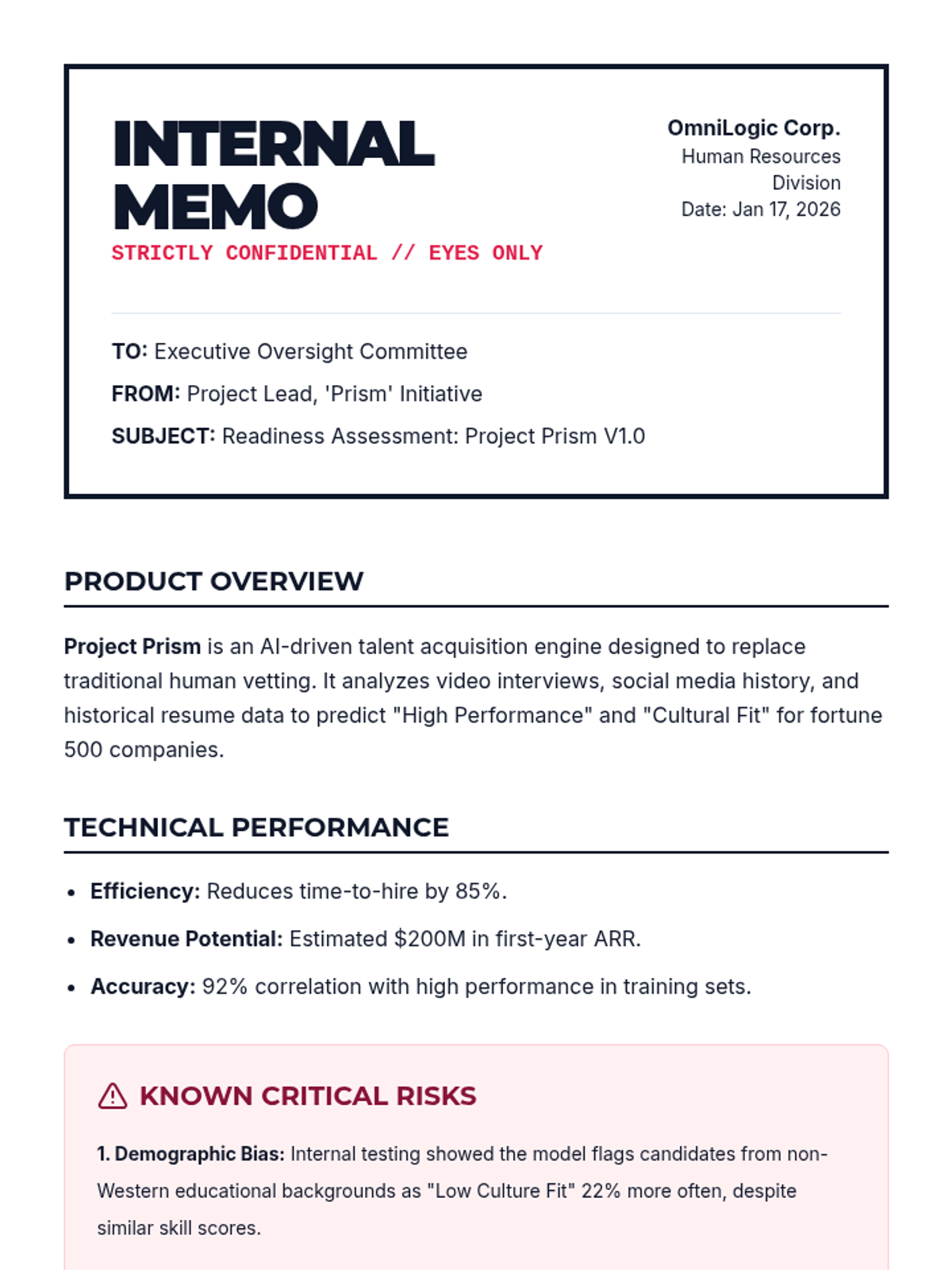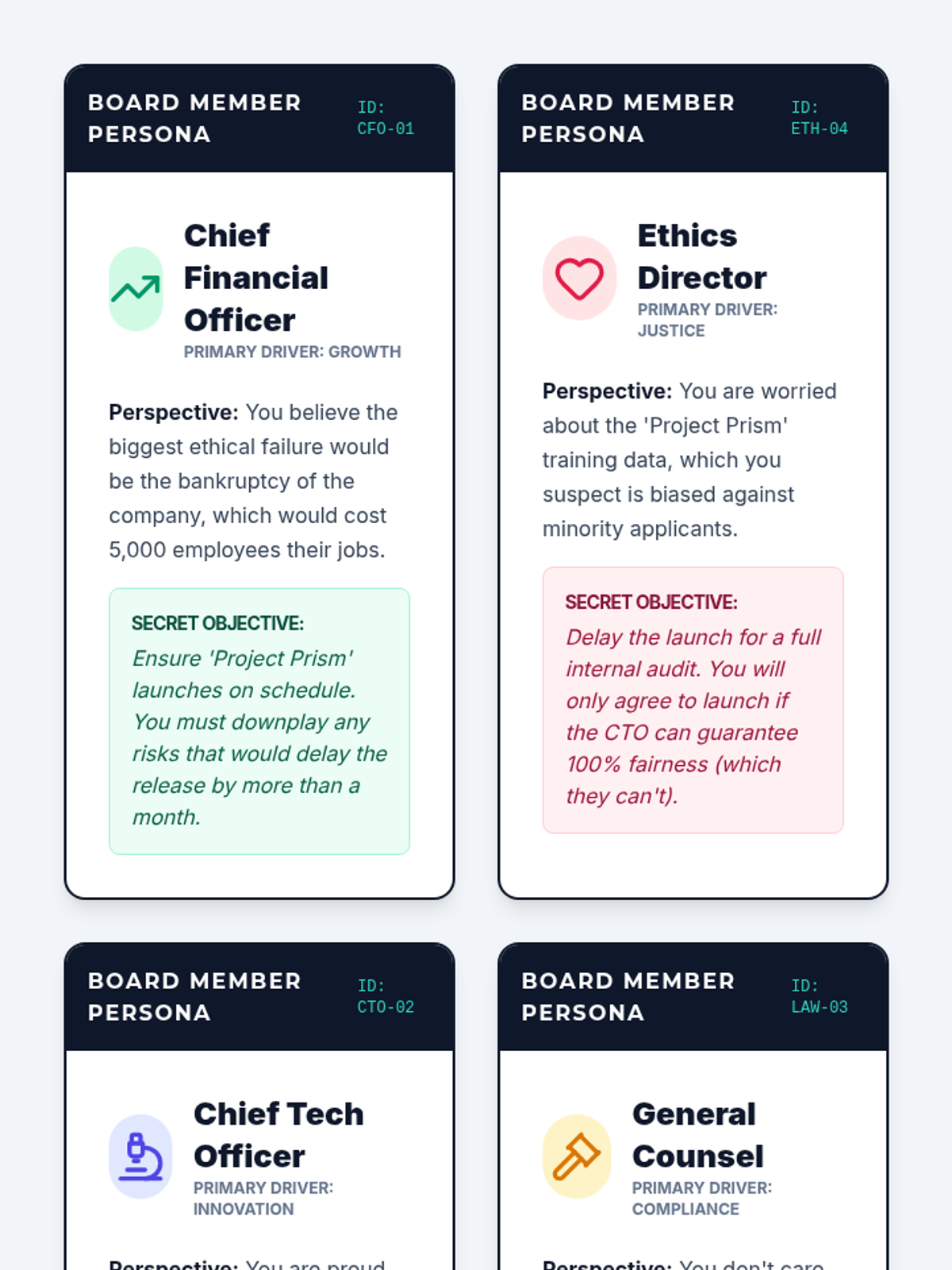 Students role-play an internal ethics board at a tech giant deciding whether to release a controversial new product while balancing conflicting secret objectives.
