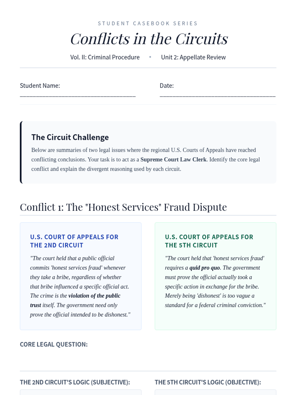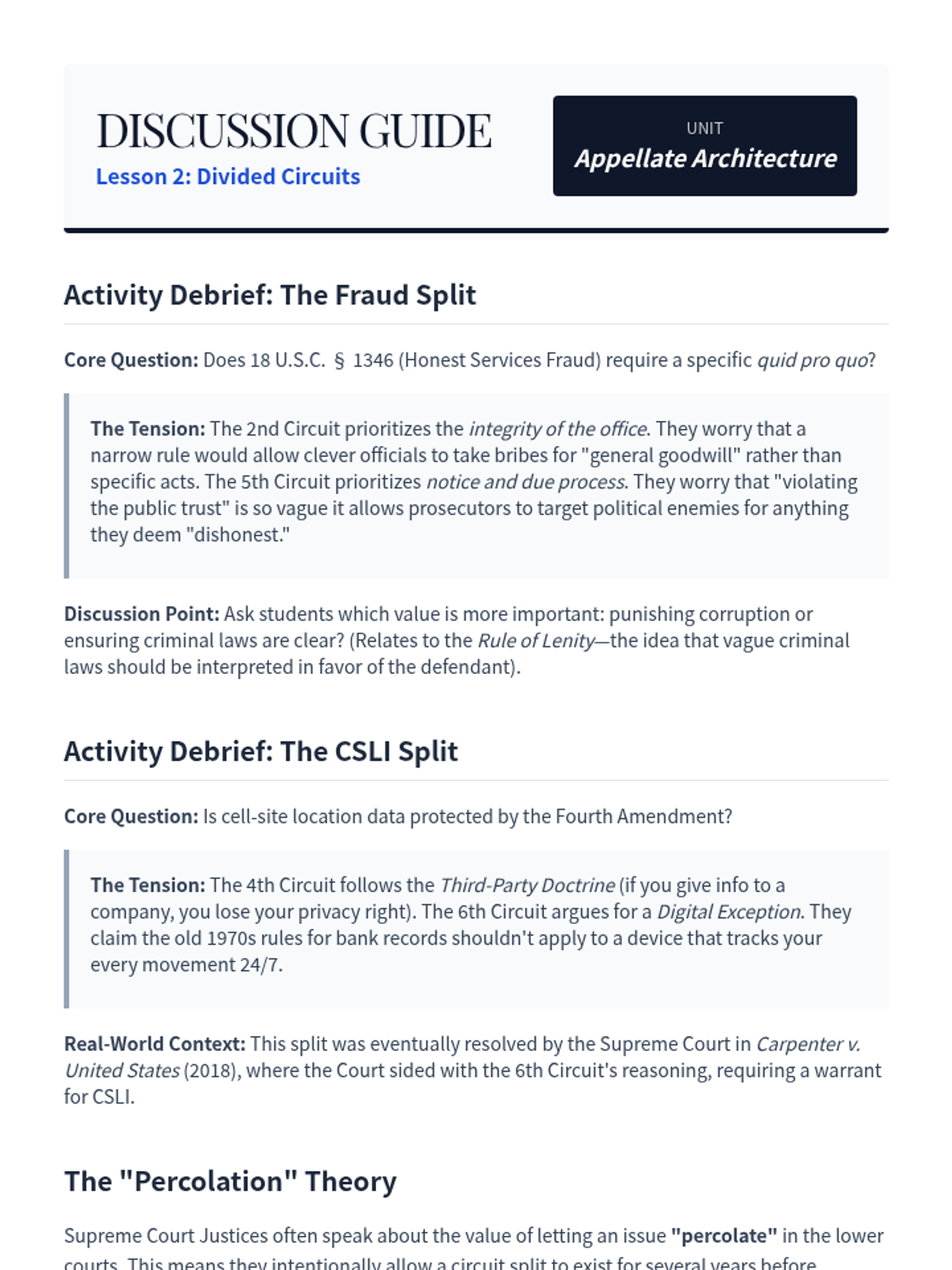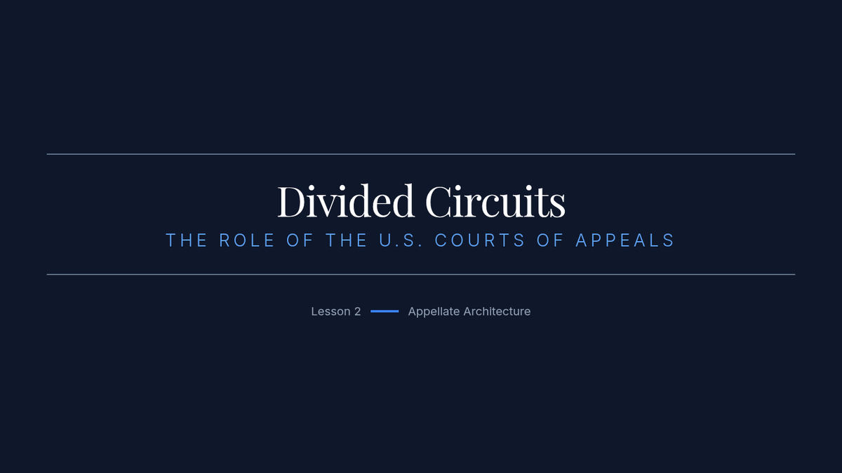 This lesson examines the role of the U.S. Courts of Appeals, specifically focusing on how circuit splits create legal instability and necessitate Supreme Court intervention.