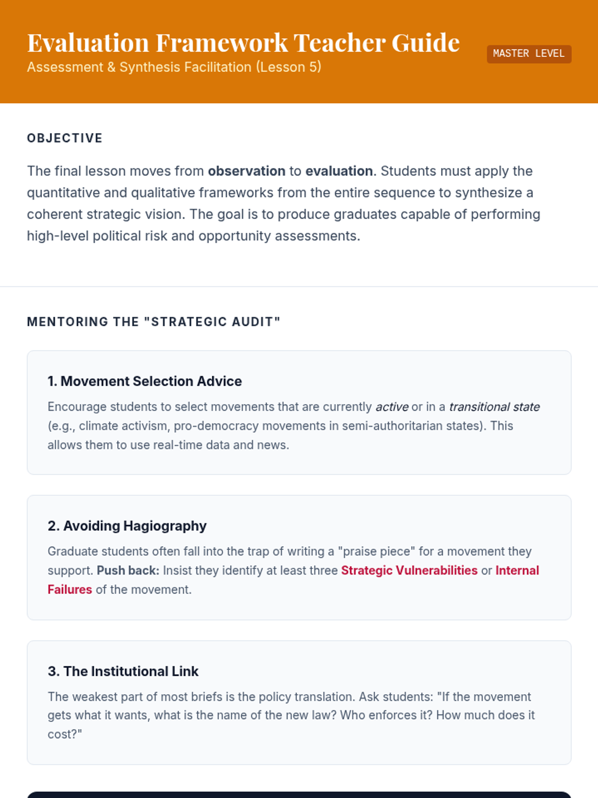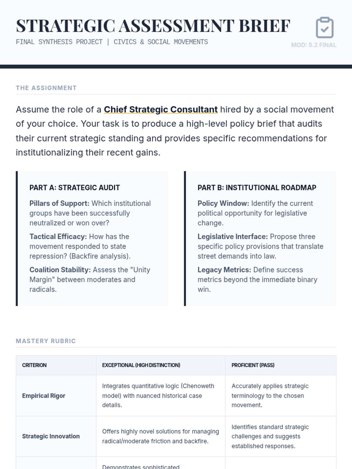 Develops a multidimensional framework for evaluating movement success beyond binary outcomes, culminating in the presentation of strategic policy assessments.