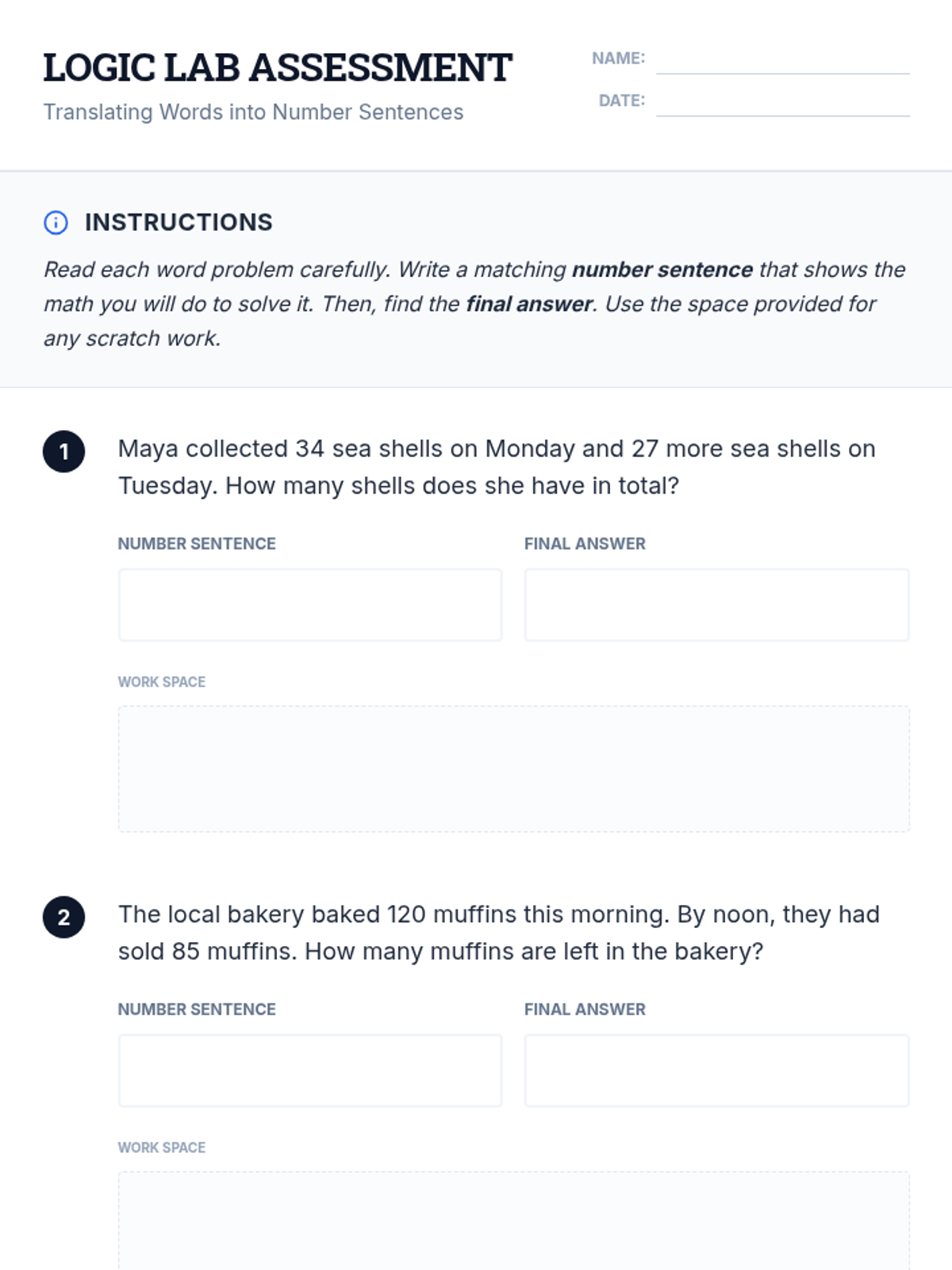 A lesson focused on identifying the two distinct unknowns in multi-step mathematical word problems using a detective-themed assessment.