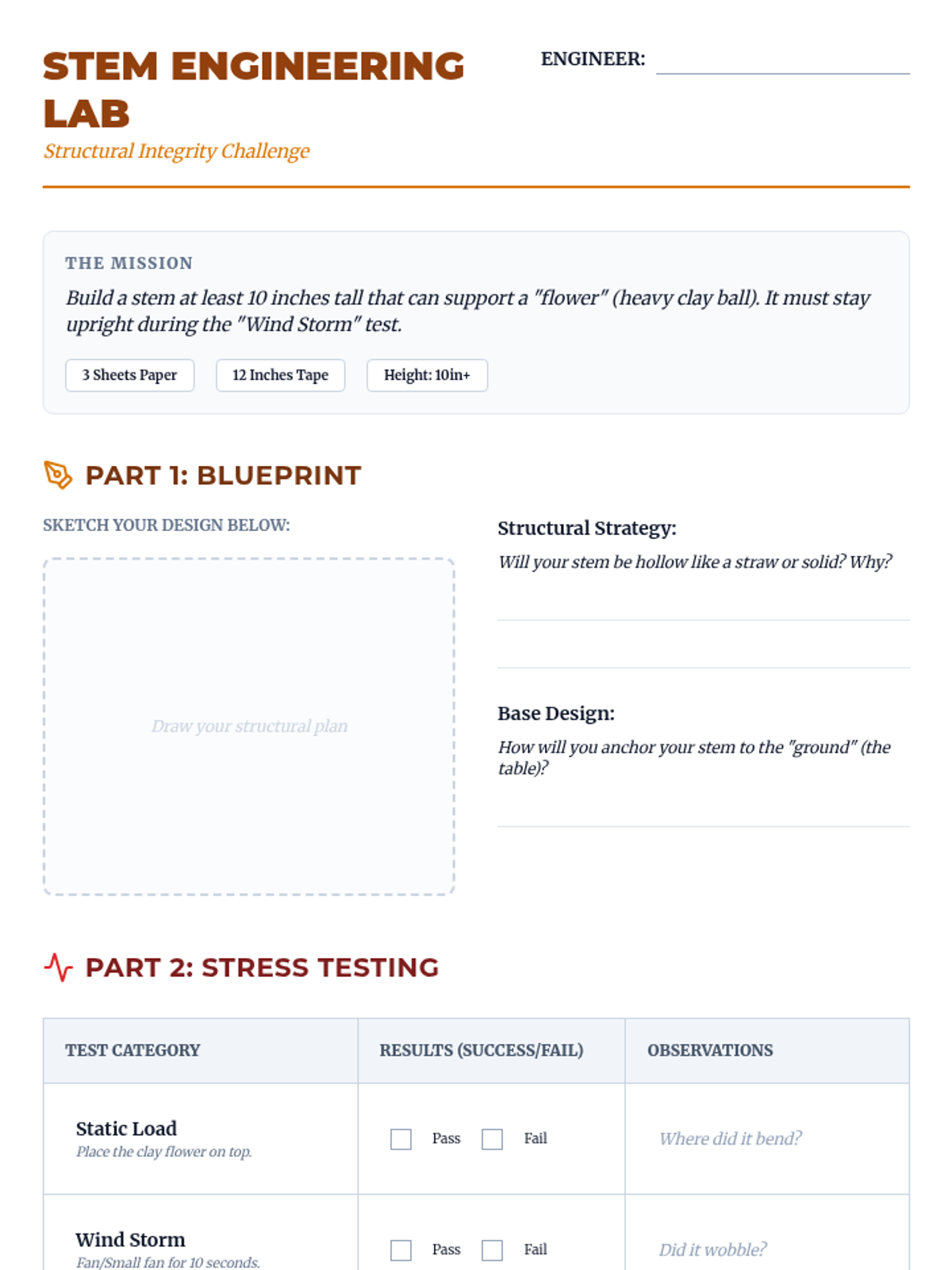 Students test the strength of different stem structures and analyze how they support the plant and transport materials.