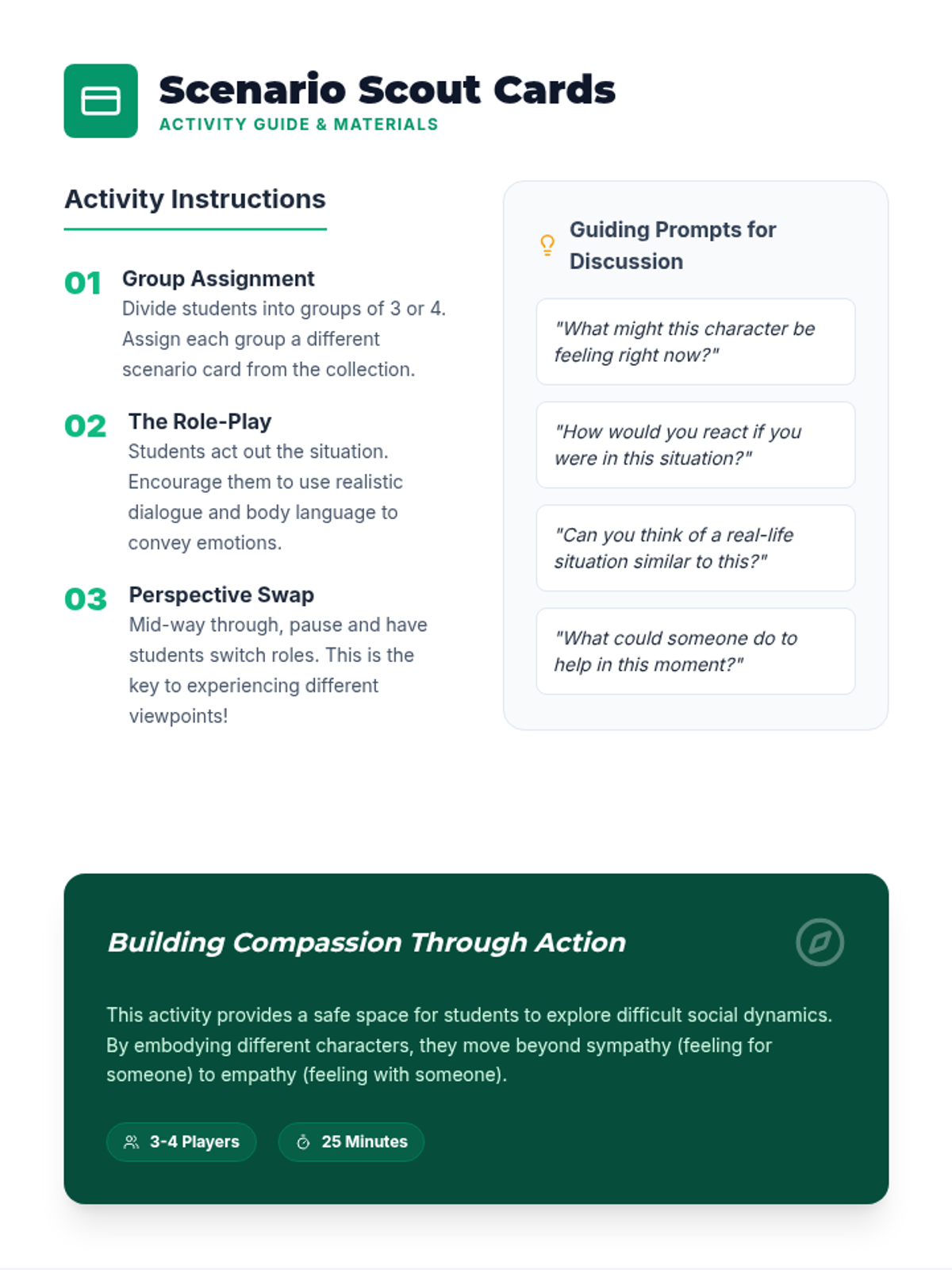 Middle school students explore complex emotional perspectives through interactive role-play scenarios and deep reflective journaling.