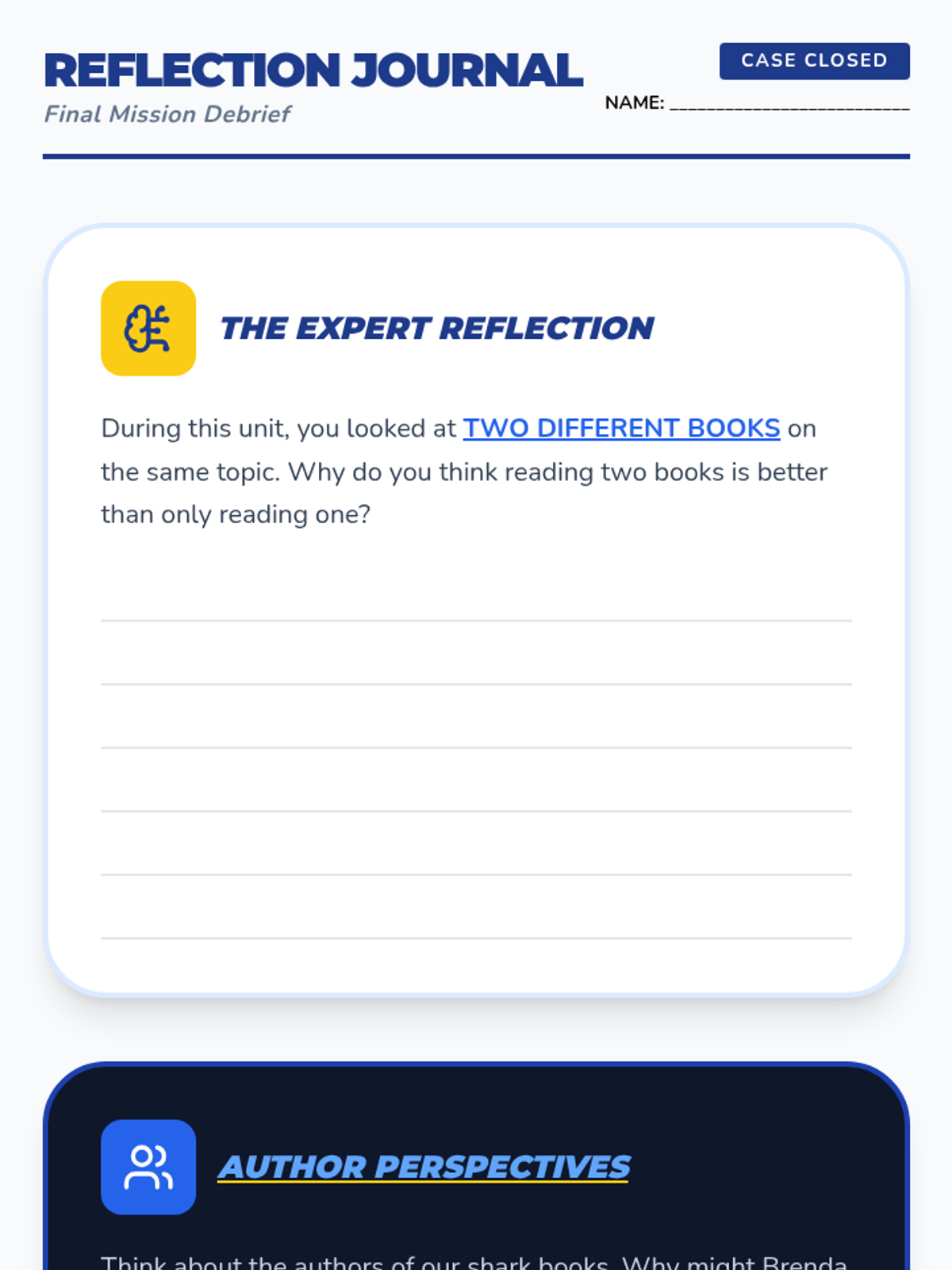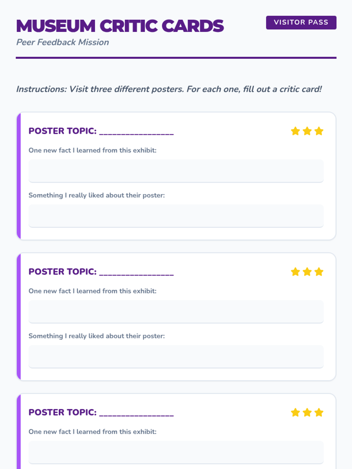 Students present their research posters in a gallery walk format, providing peer feedback and reflecting on how multiple sources provide a fuller picture.
