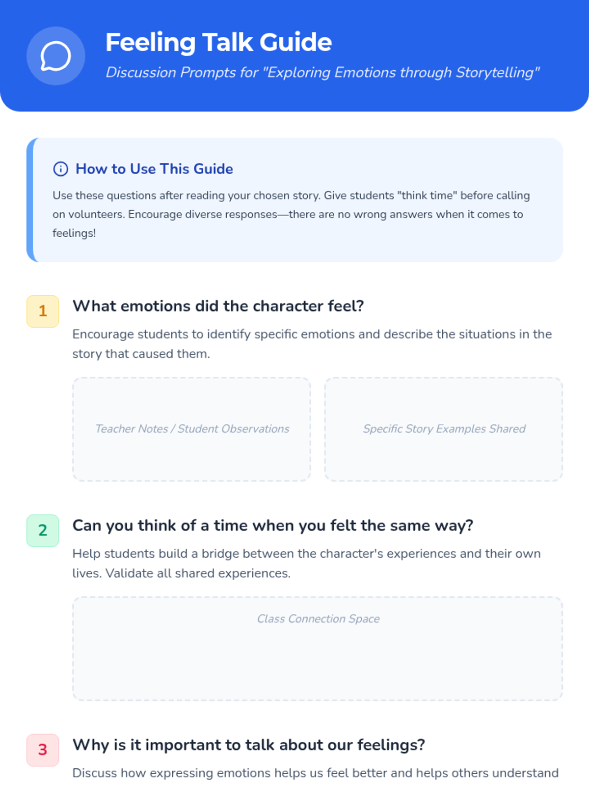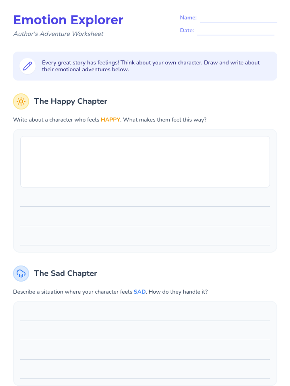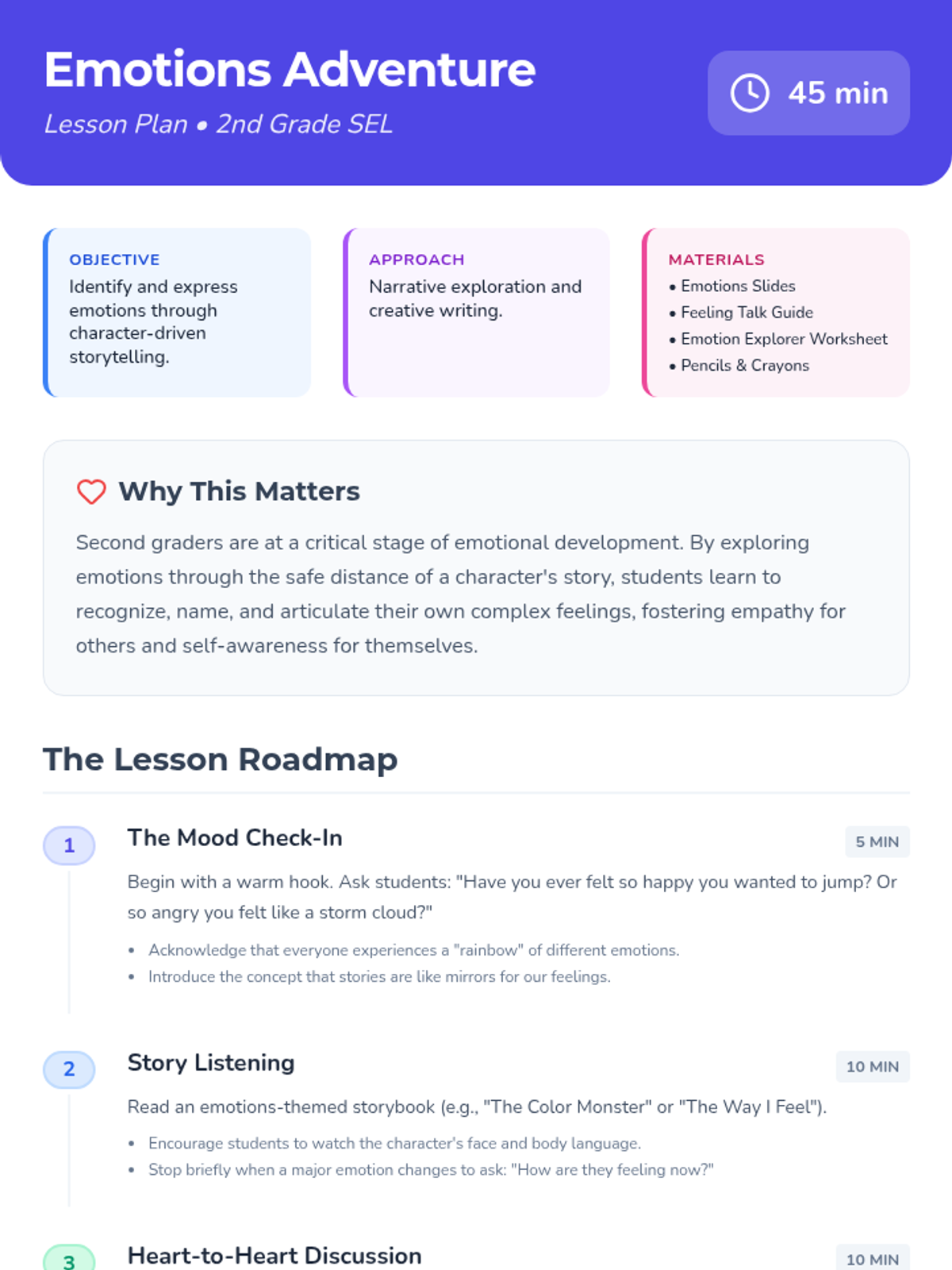 A lesson where 2nd-grade students explore and express emotions through storytelling, helping them develop emotional intelligence and empathy.