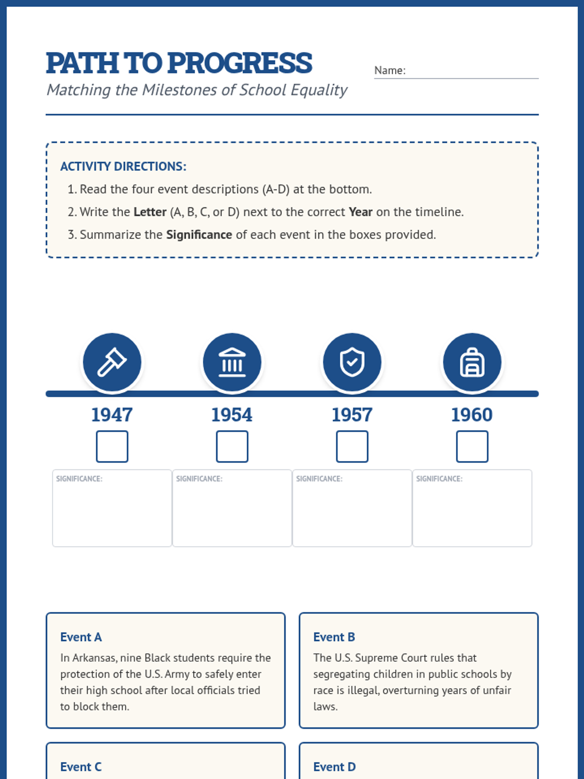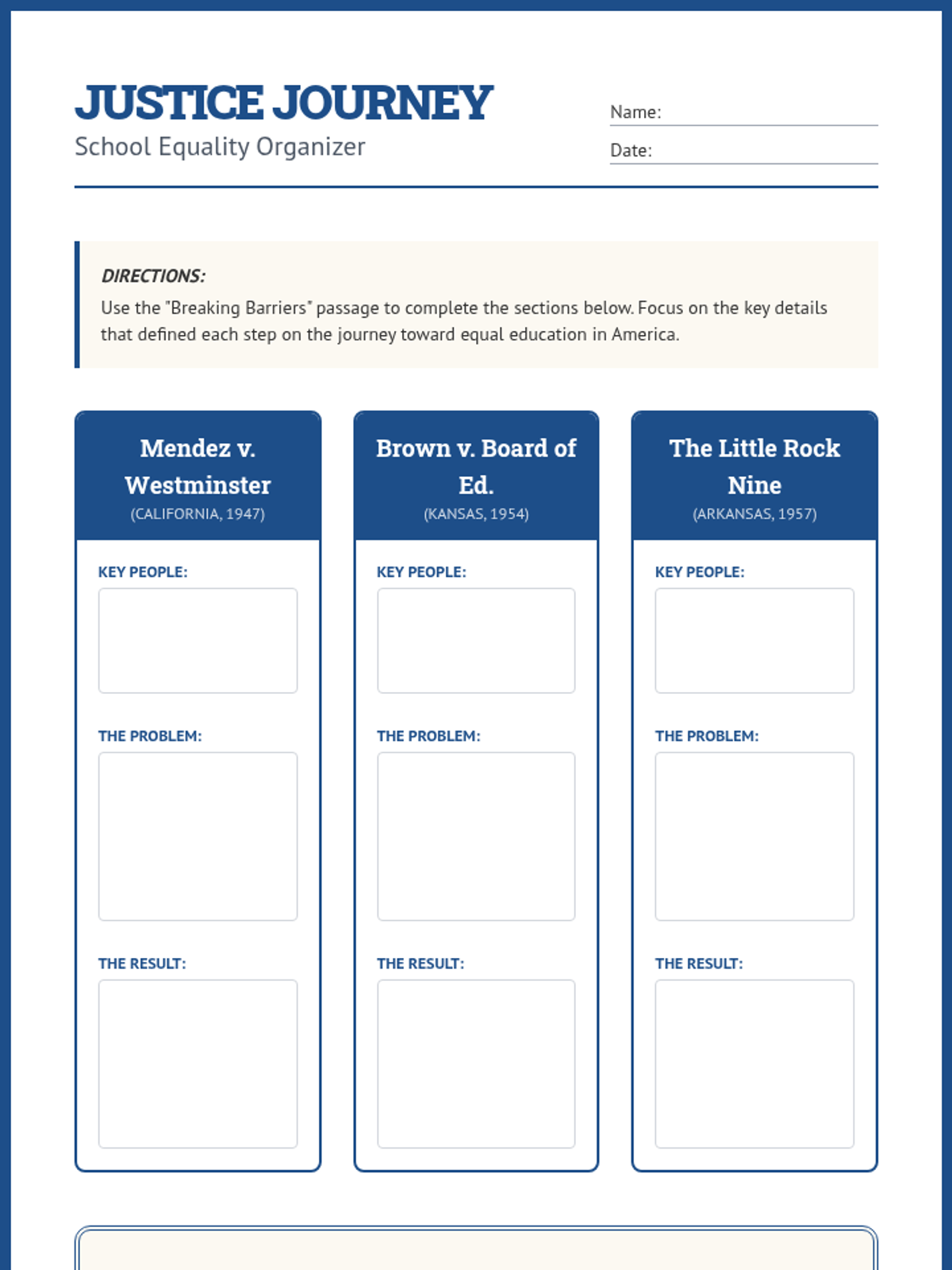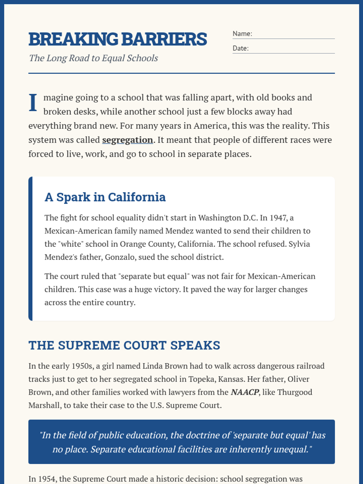 A lesson exploring the struggle for school equality in the United States, focusing on key legal cases and the brave students who led the way for integration.