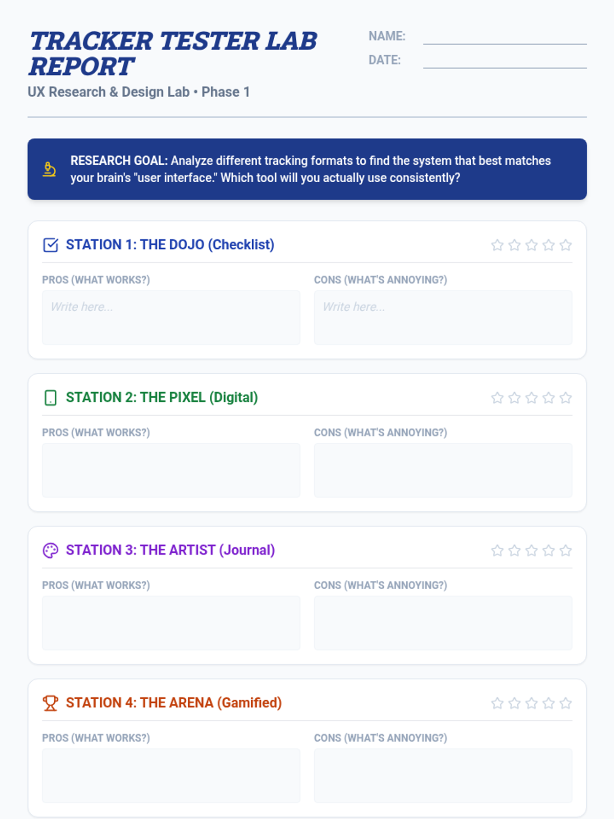 Students compare different tracking formats (digital, paper, checklists, journals) to identify which styles might work best for their personal habits.