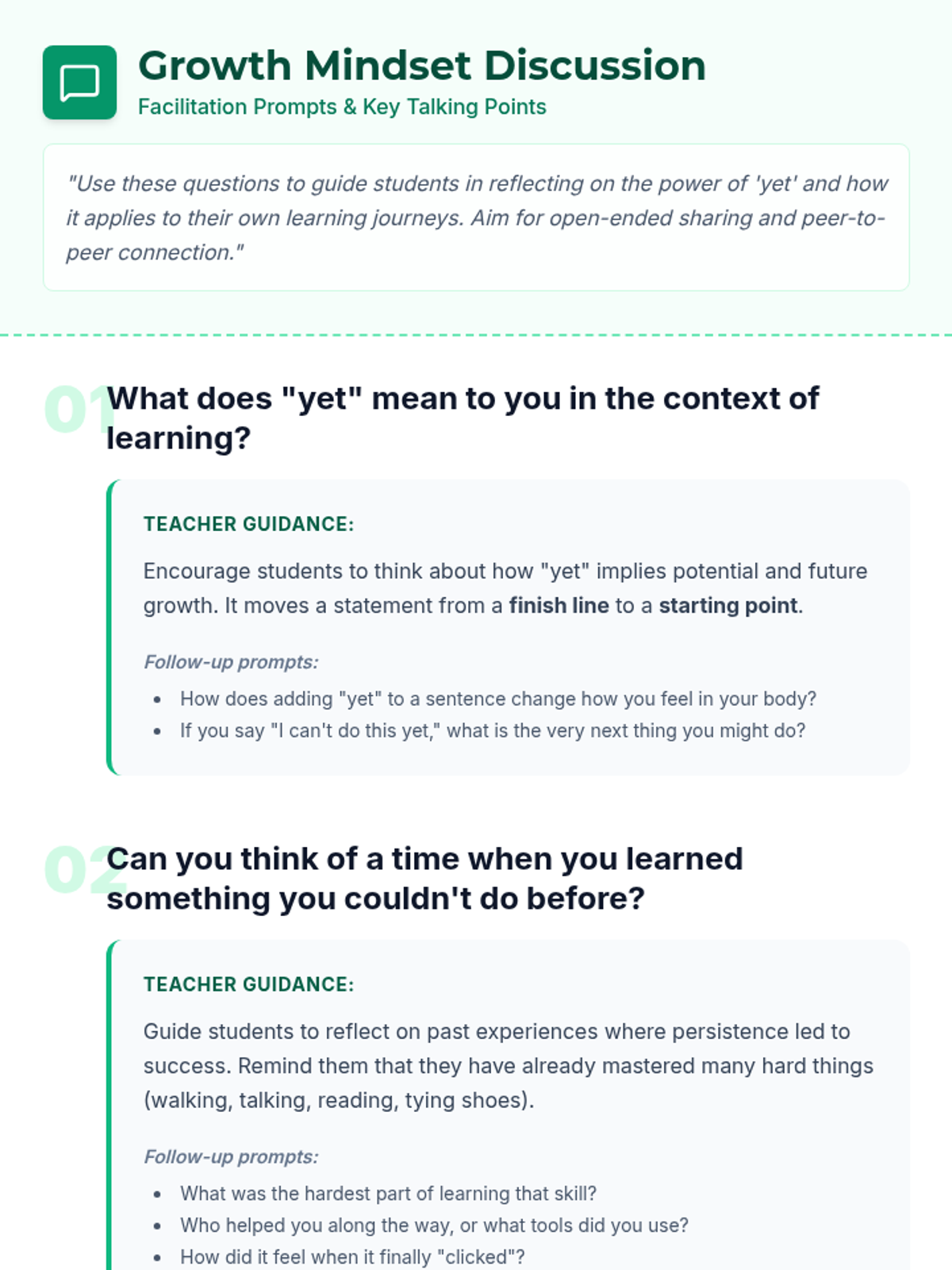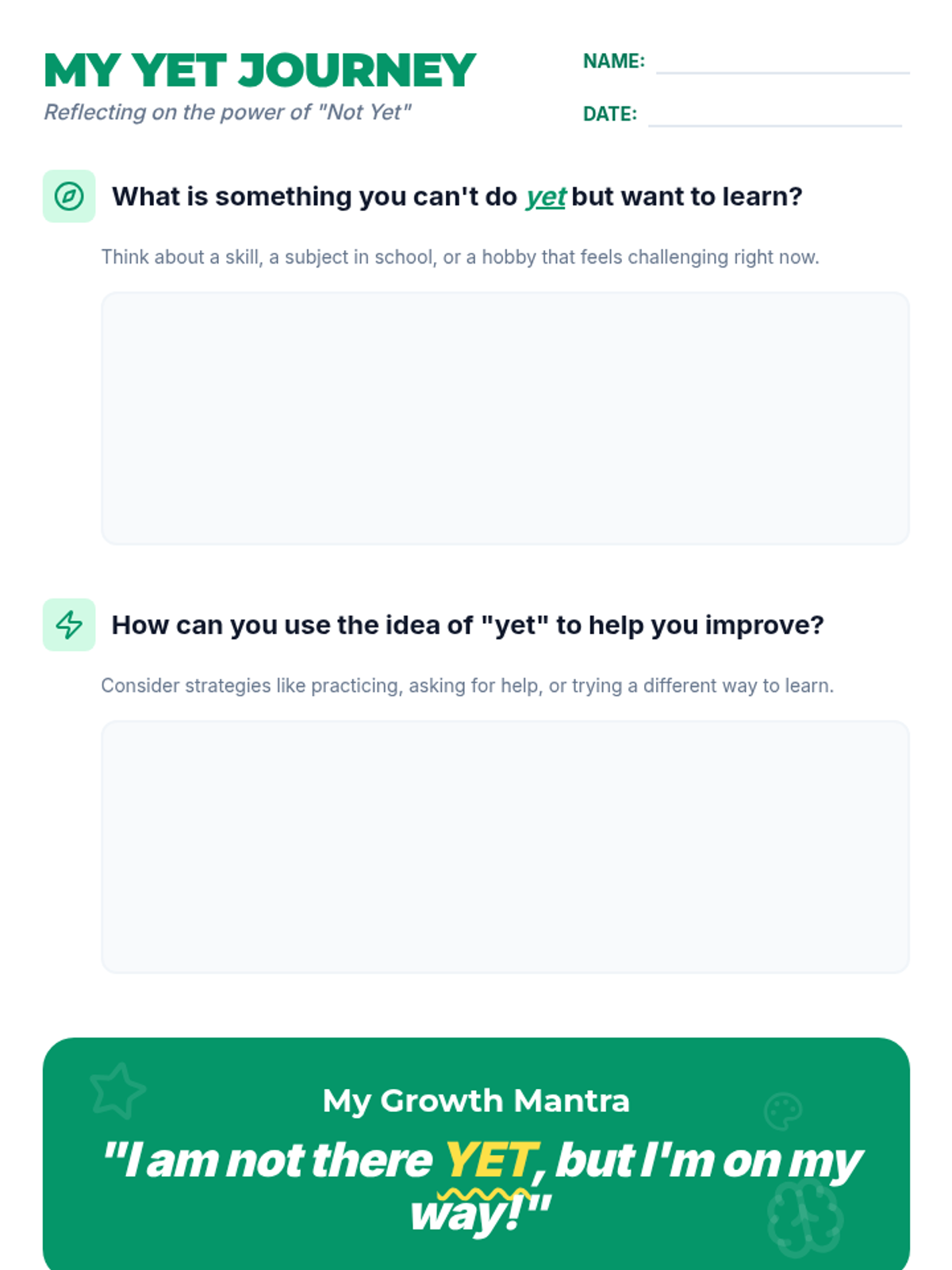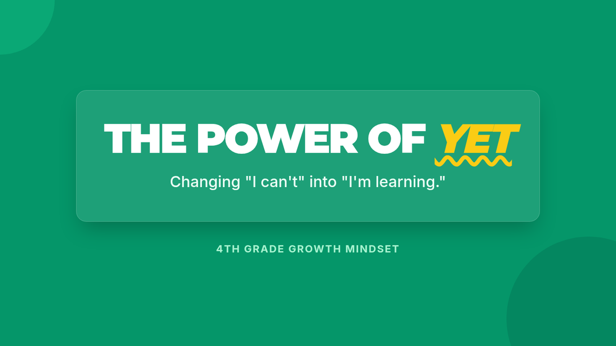 Introduction to the growth mindset. Focus on the 'Power of Yet' and building resilience when facing initial failure.