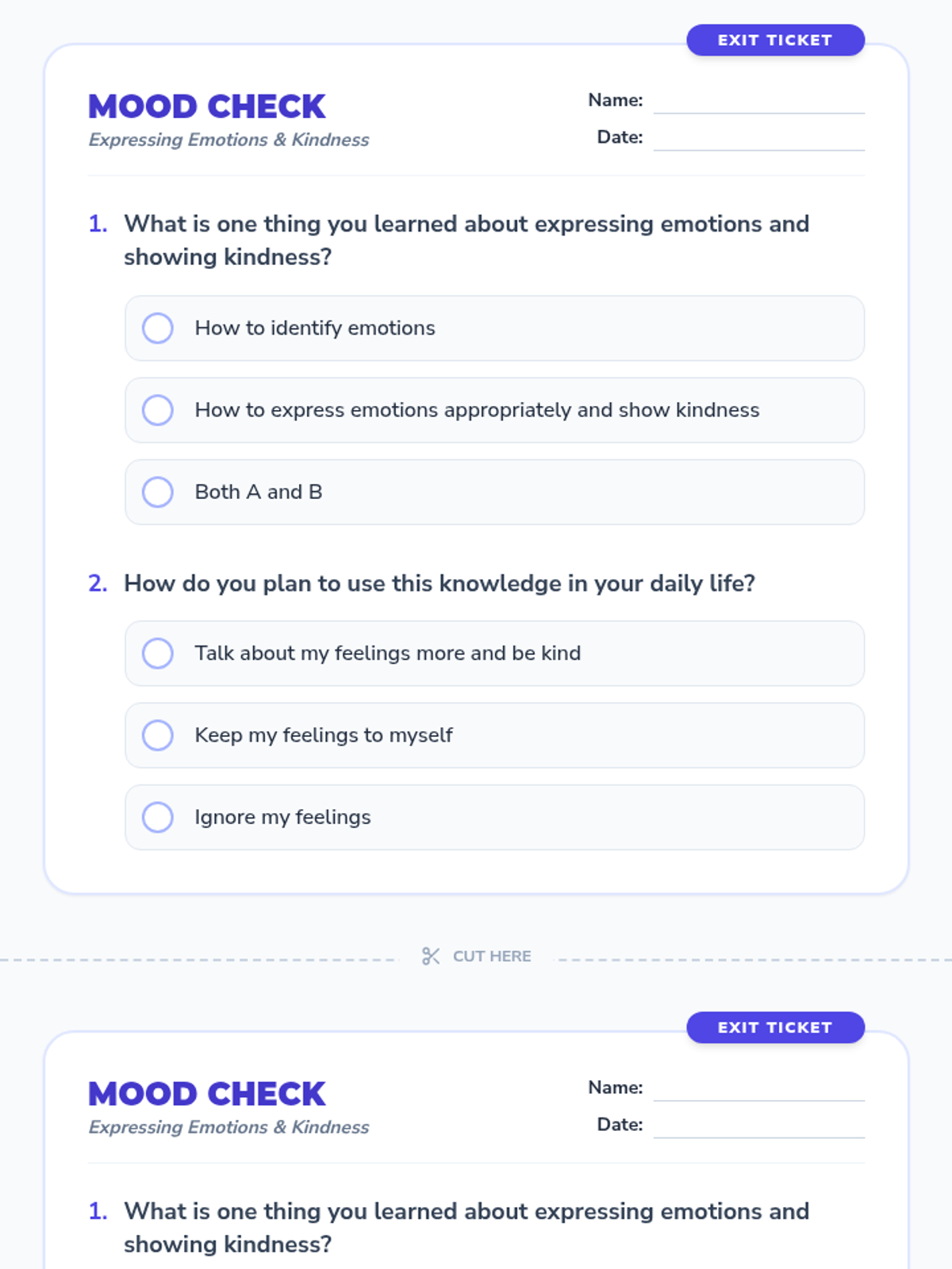 A fast-paced, 10-minute social-emotional learning lesson focused on building self-confidence through self-acceptance and kindness toward others. Students define self-esteem and set immediate goals for personal growth and peer acceptance.