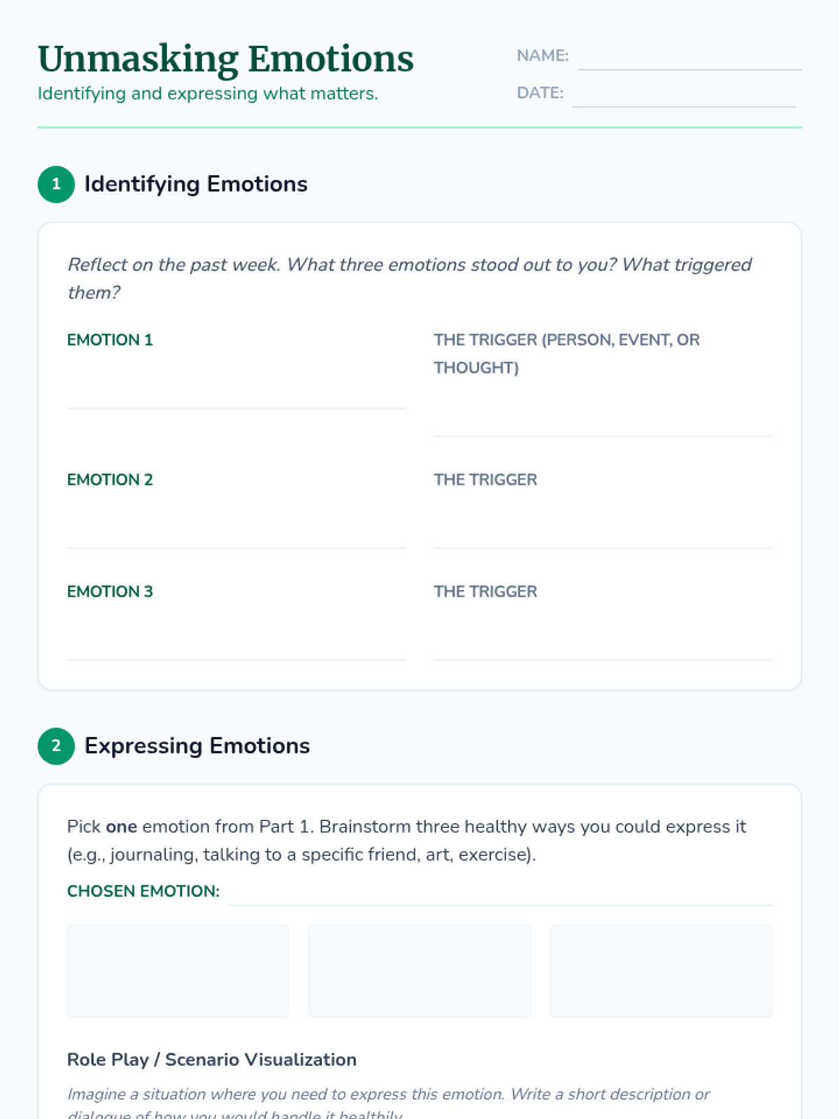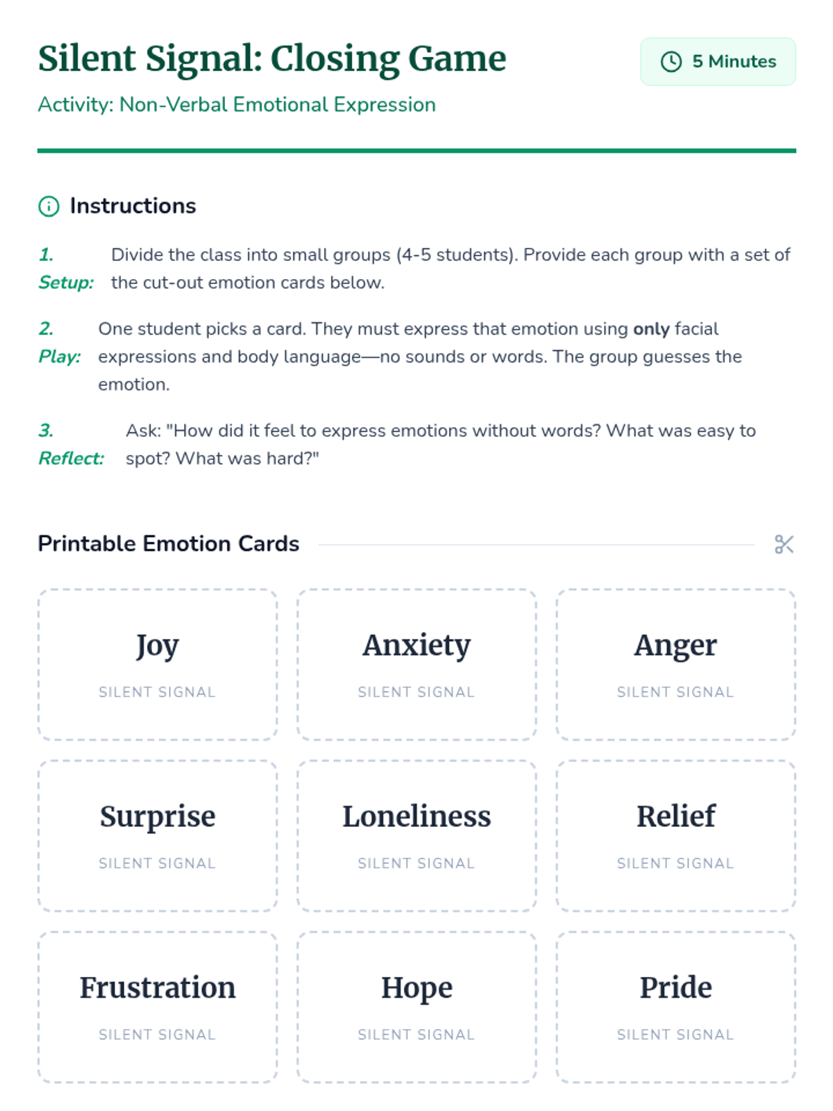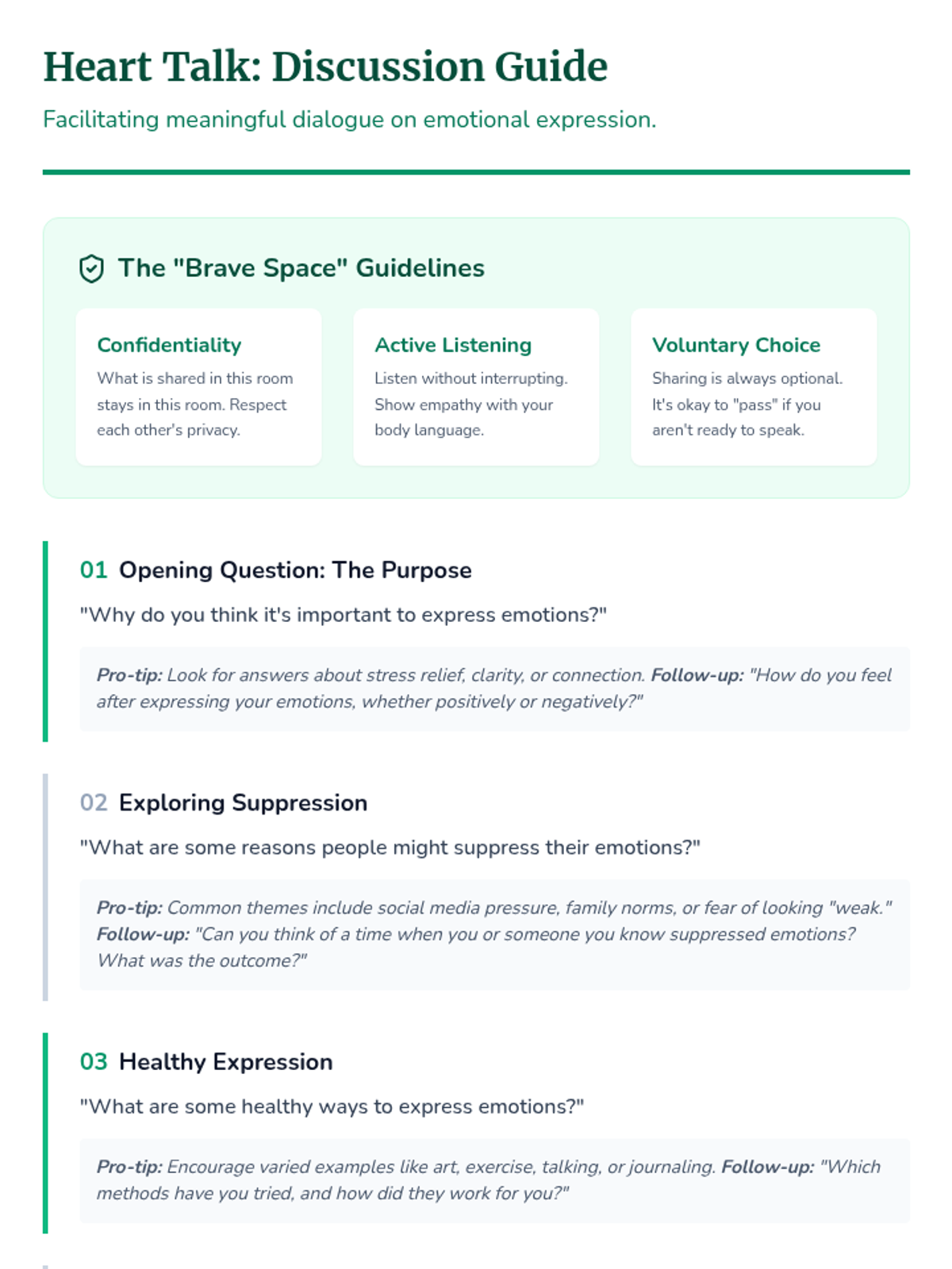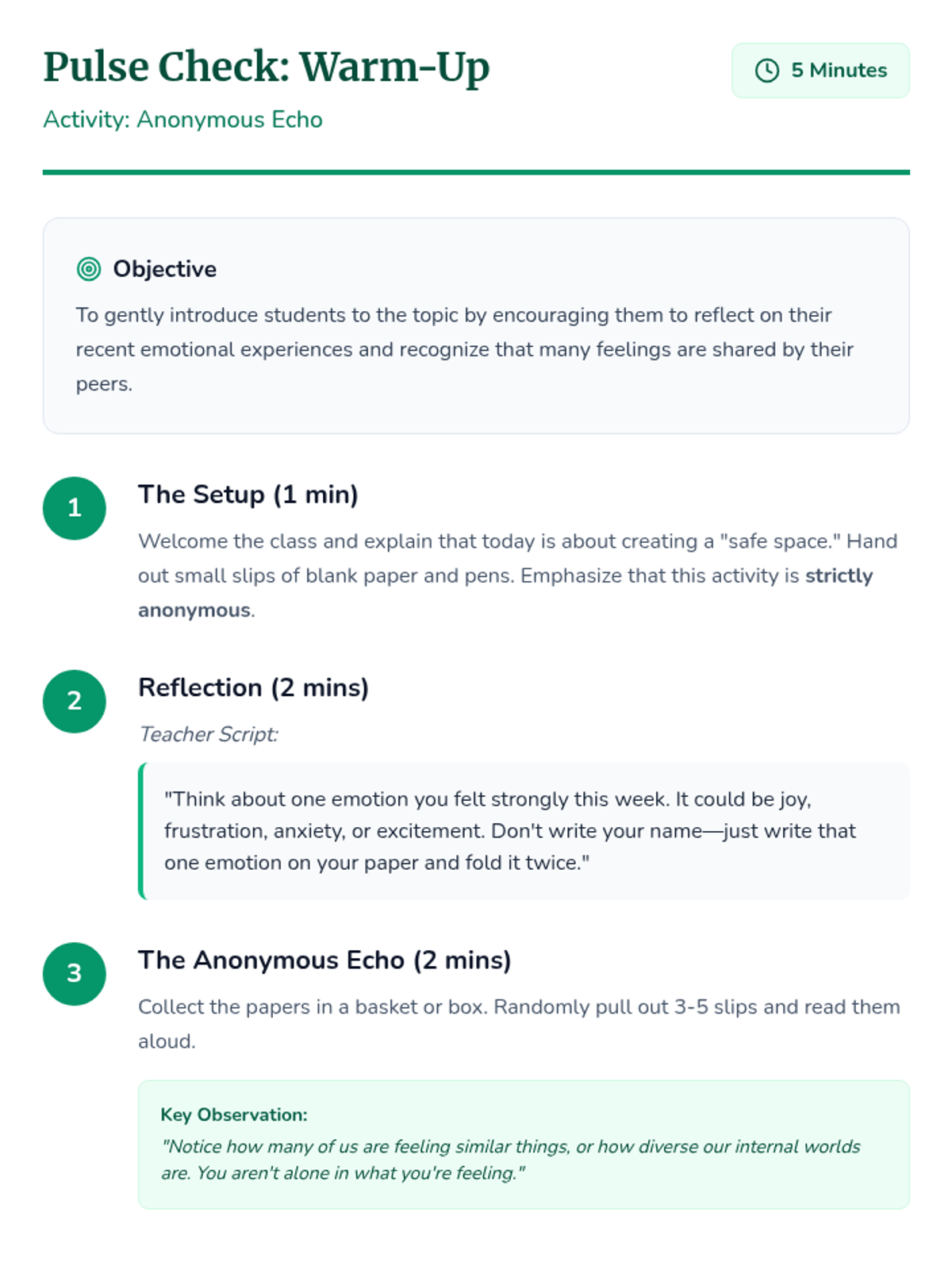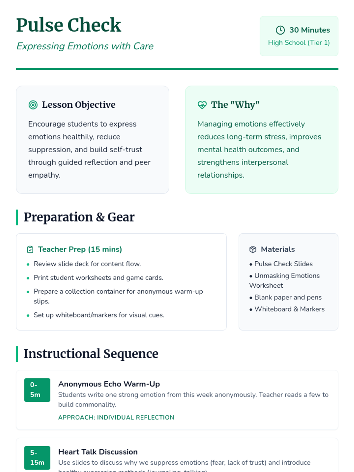 A 30-minute high school lesson focused on identifying, understanding, and healthily expressing emotions to build self-trust and mental well-being.