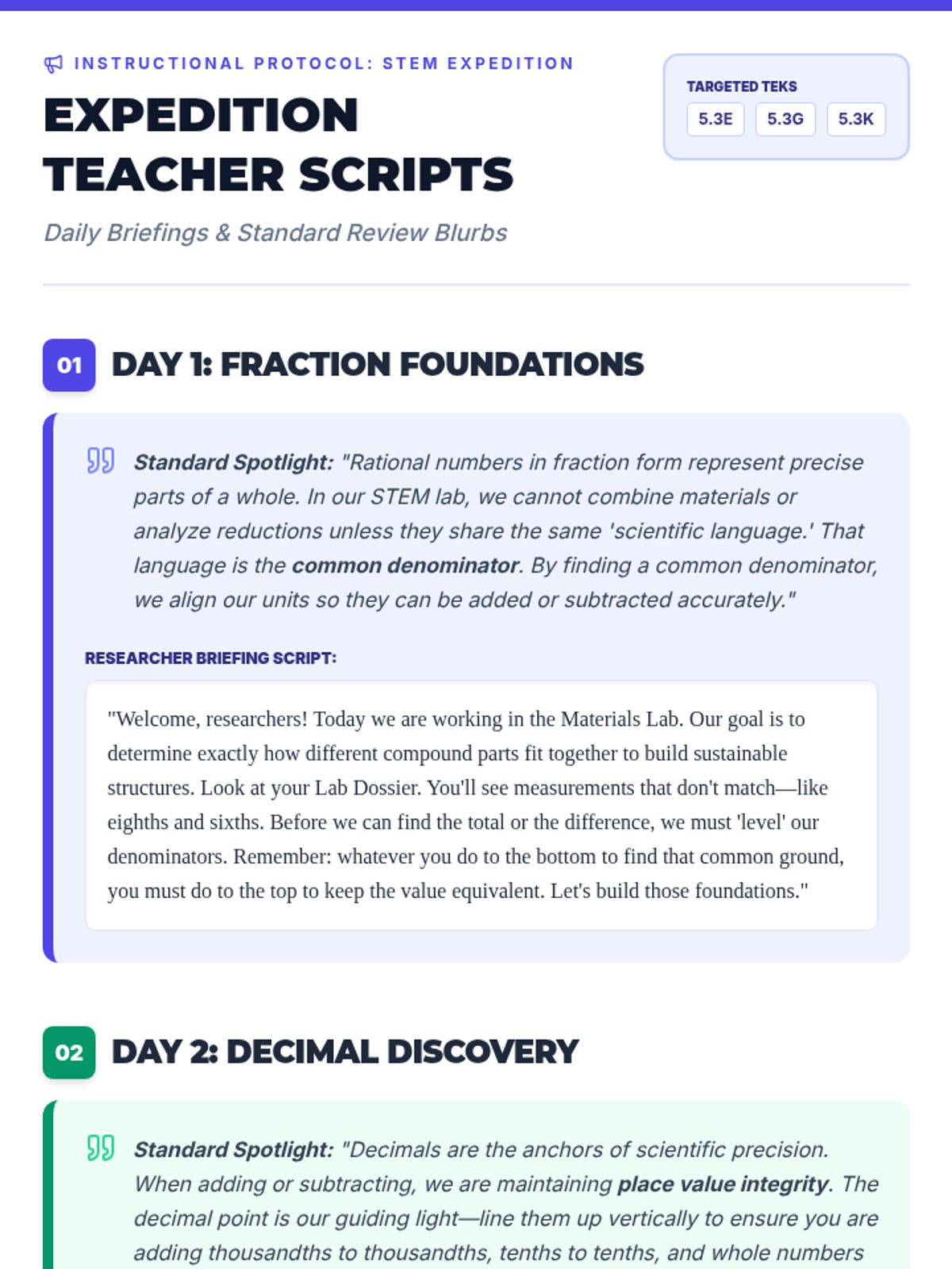 Solving for decimal quotients (5.3G) using distribution and logistics word problems.