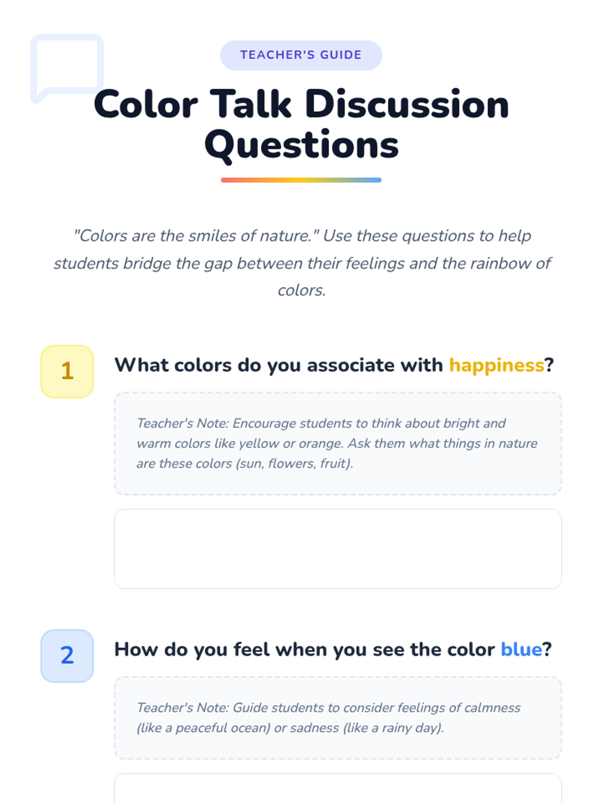 Connecting colors to feelings and exploring how brushstrokes can express different moods.