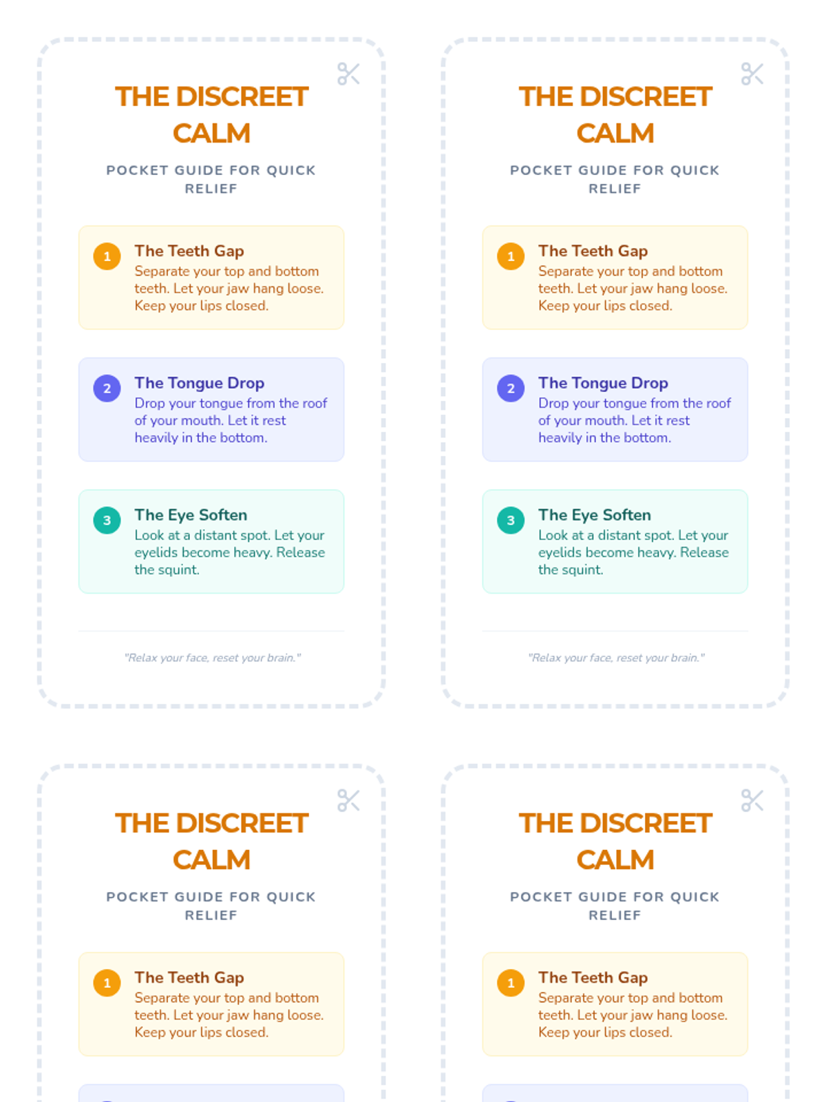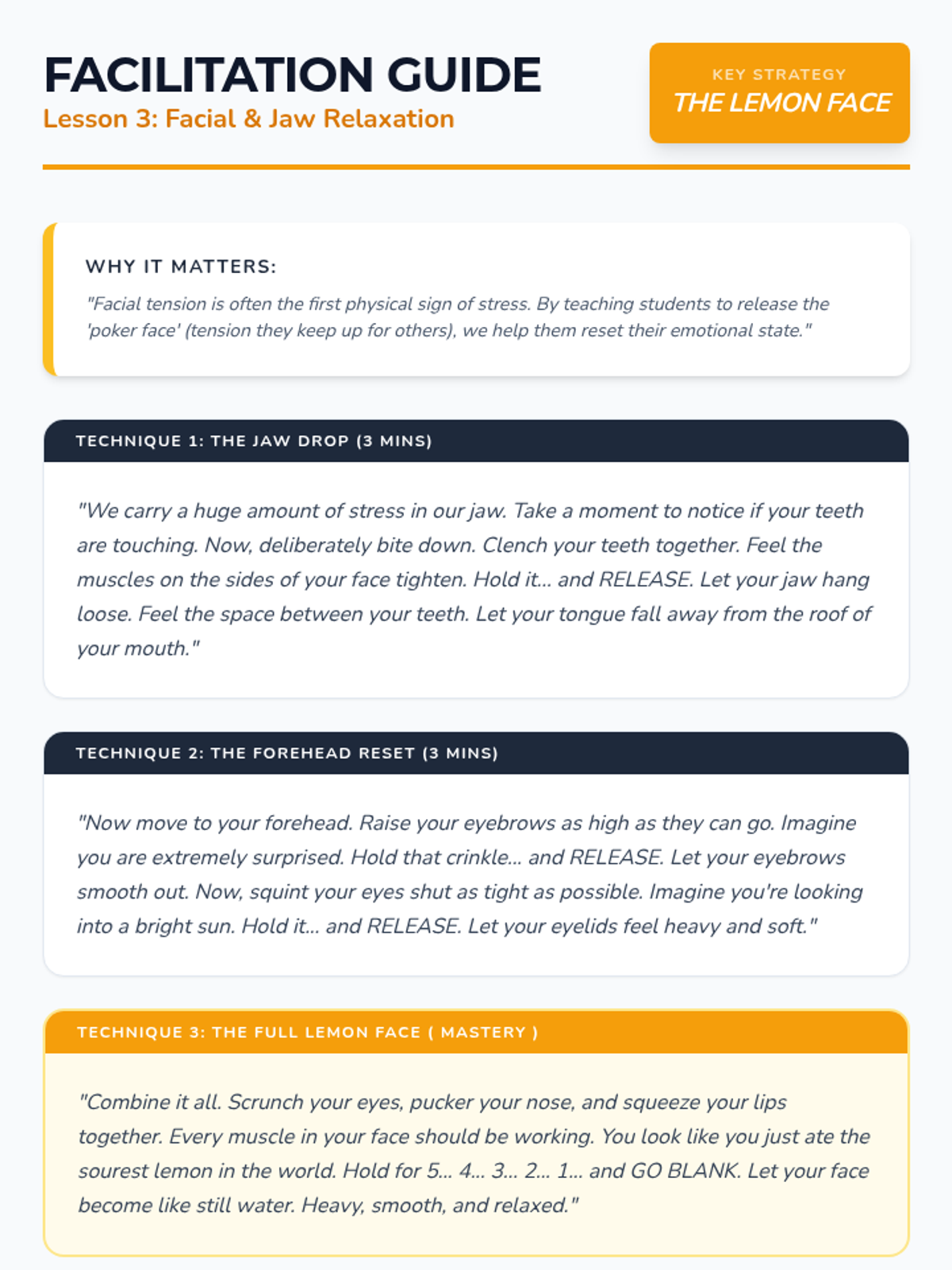 Students address facial and jaw tension, learning discreet techniques to manage stress-related headaches and mood.