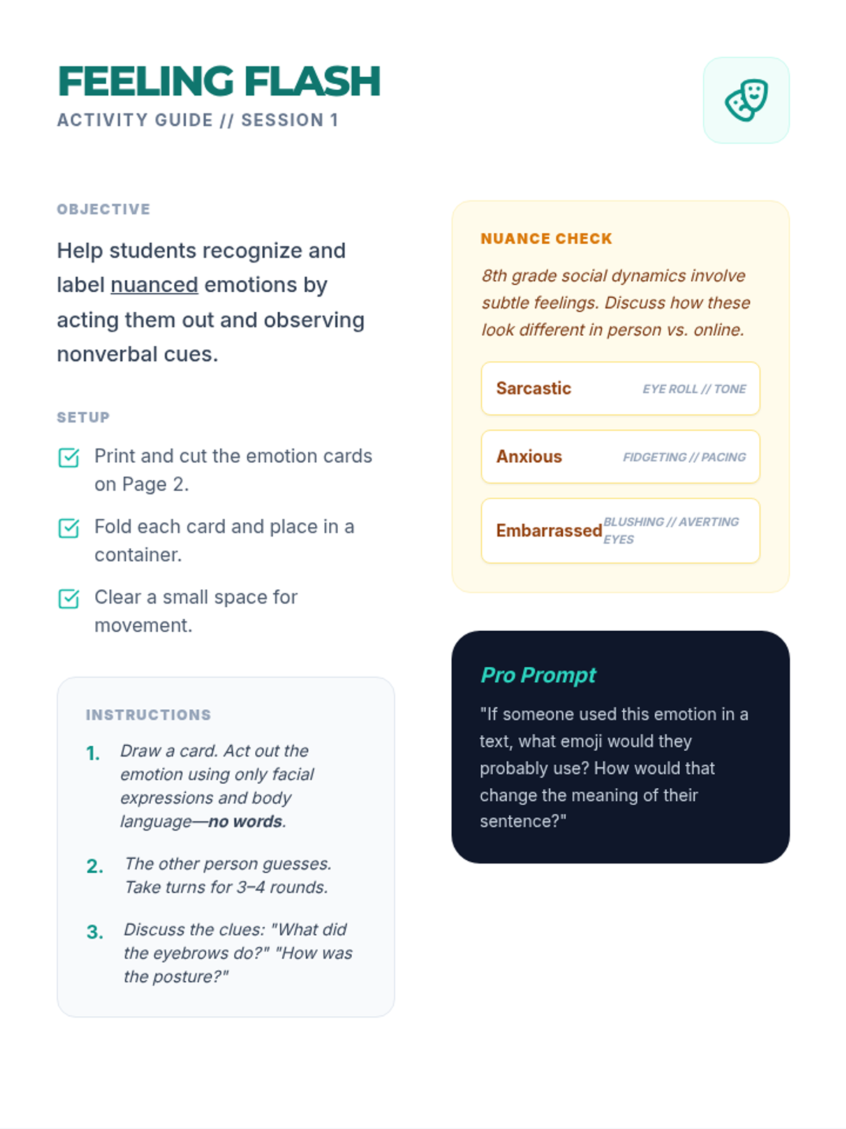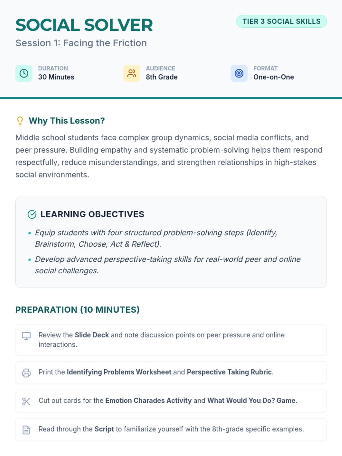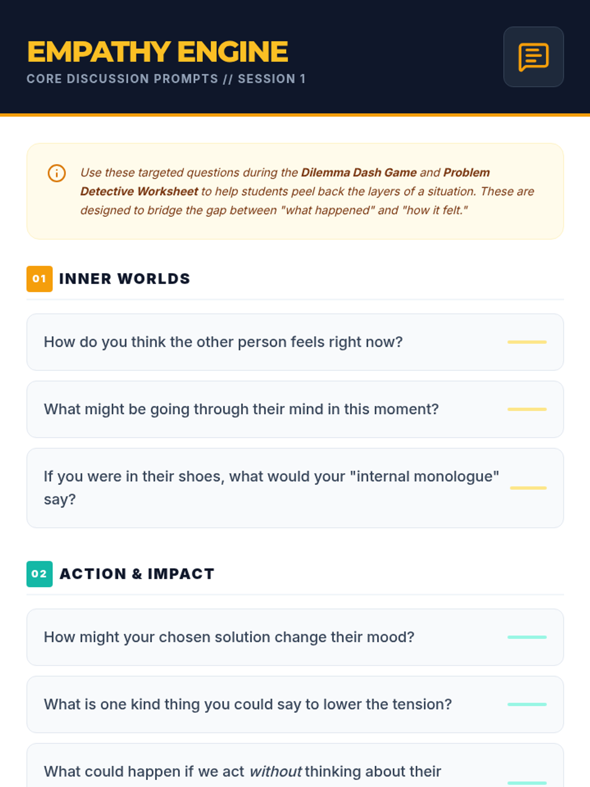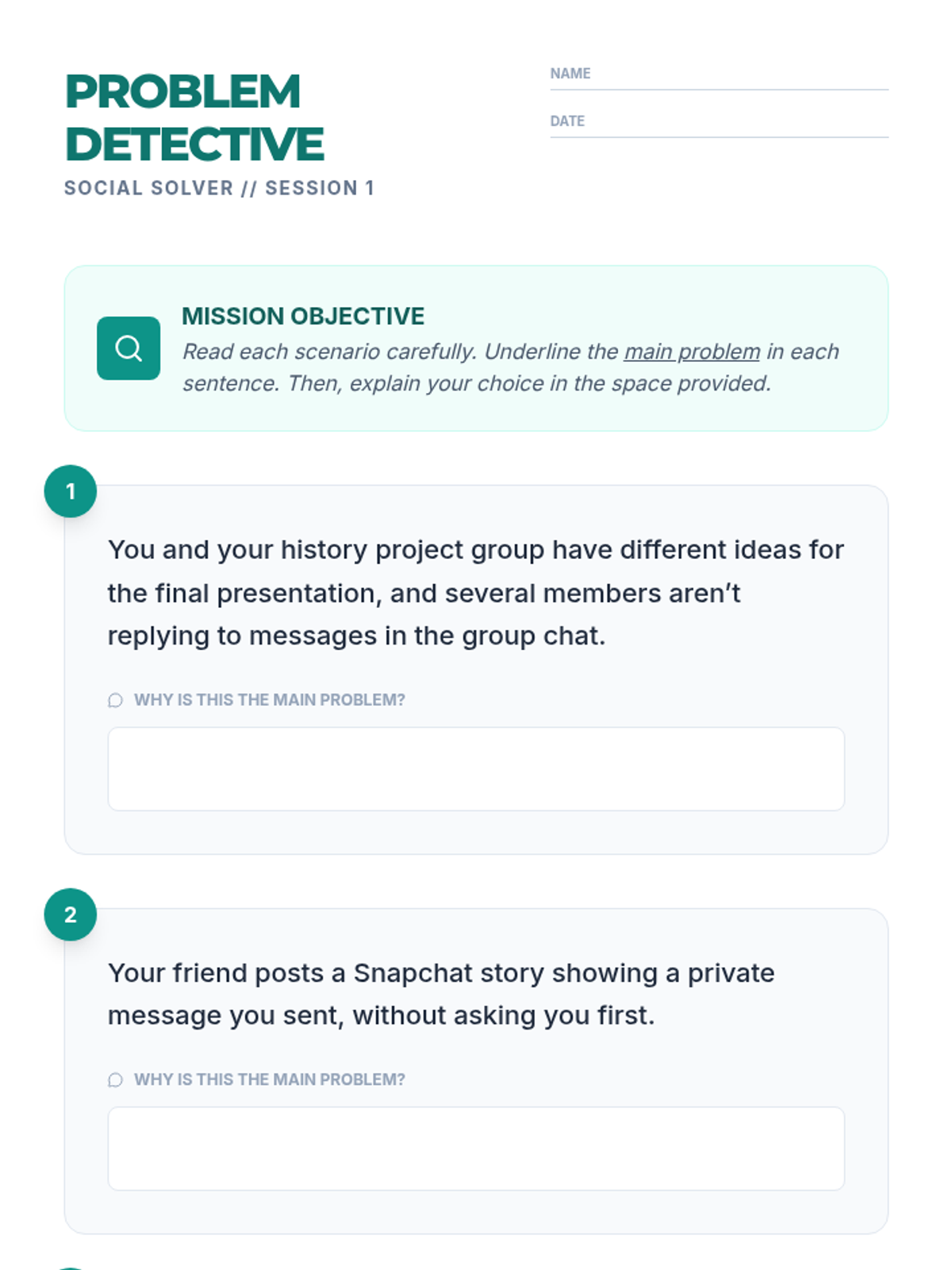 Focuses on healthy conflict resolution. Students learn to use 'I' statements and de-escalation techniques to handle disagreements without damaging friendships.