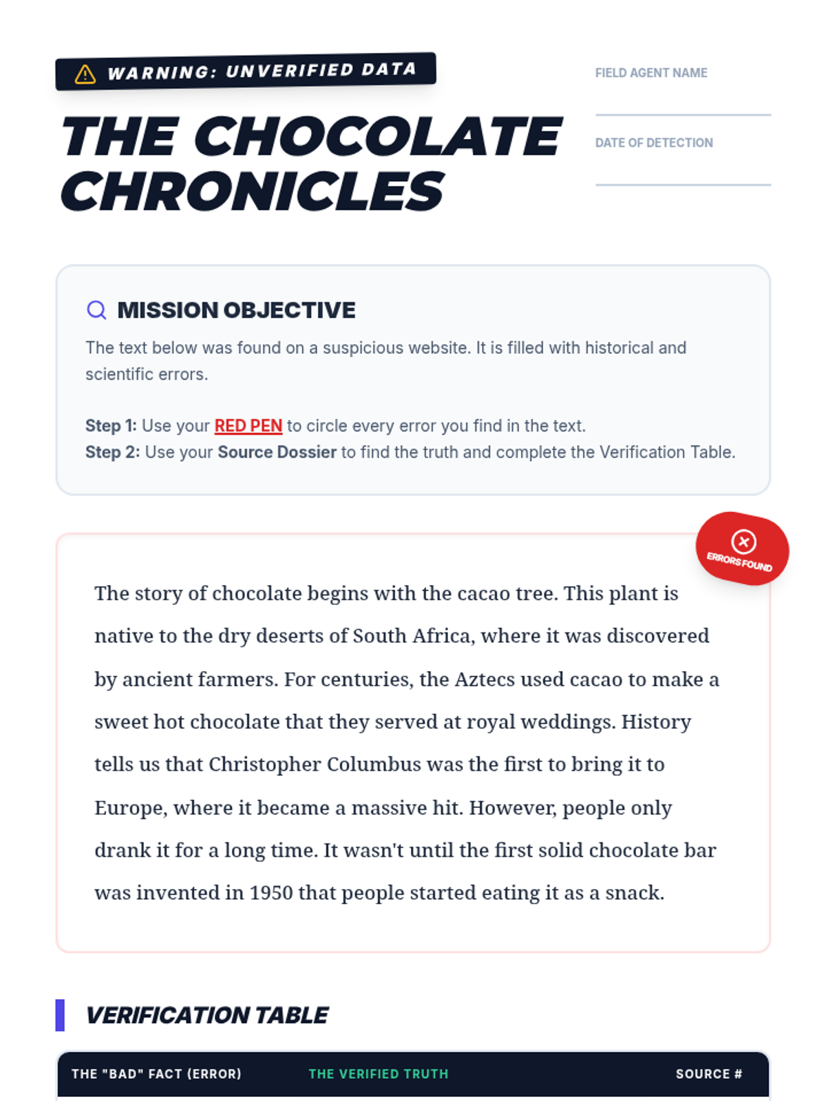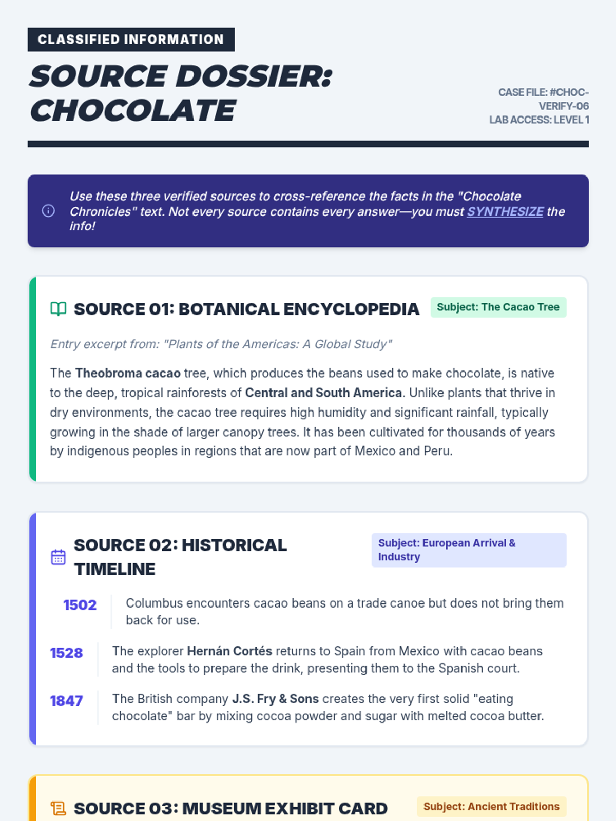 Students learn the art of synthesis and cross-referencing by correcting a historical text using multiple reliable sources. Inspired by a video on costume design research, students apply detective skills to find 'truth' in a sea of misinformation.