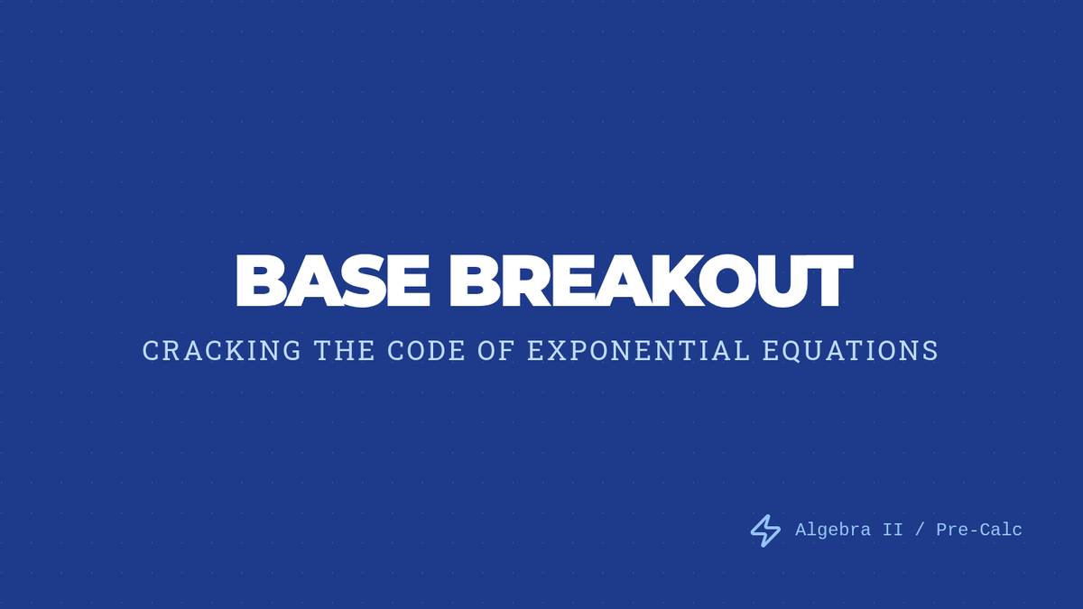 A focused lesson on solving exponential equations where both sides share the same base. Students learn to apply the property of equality for exponential functions to isolate and solve for variables in exponents.