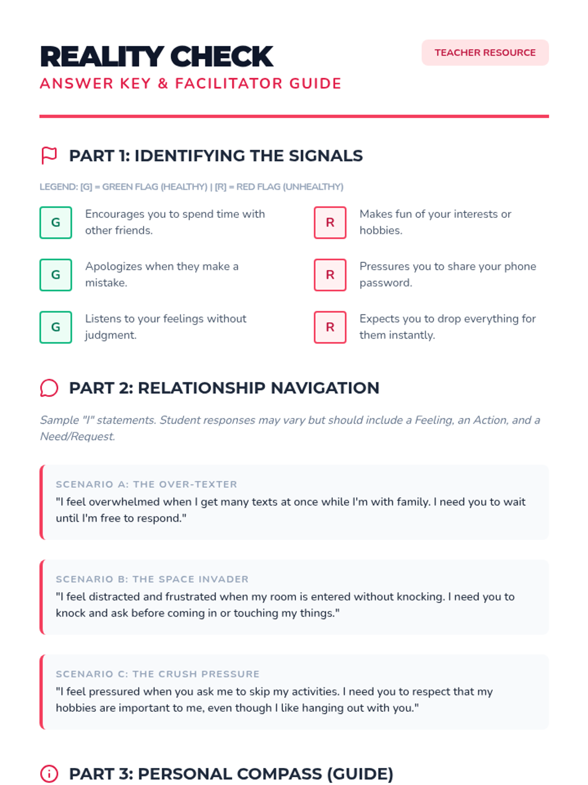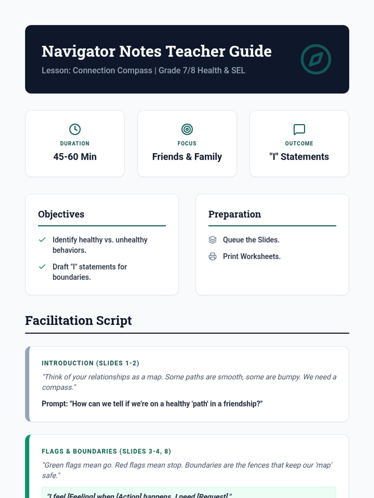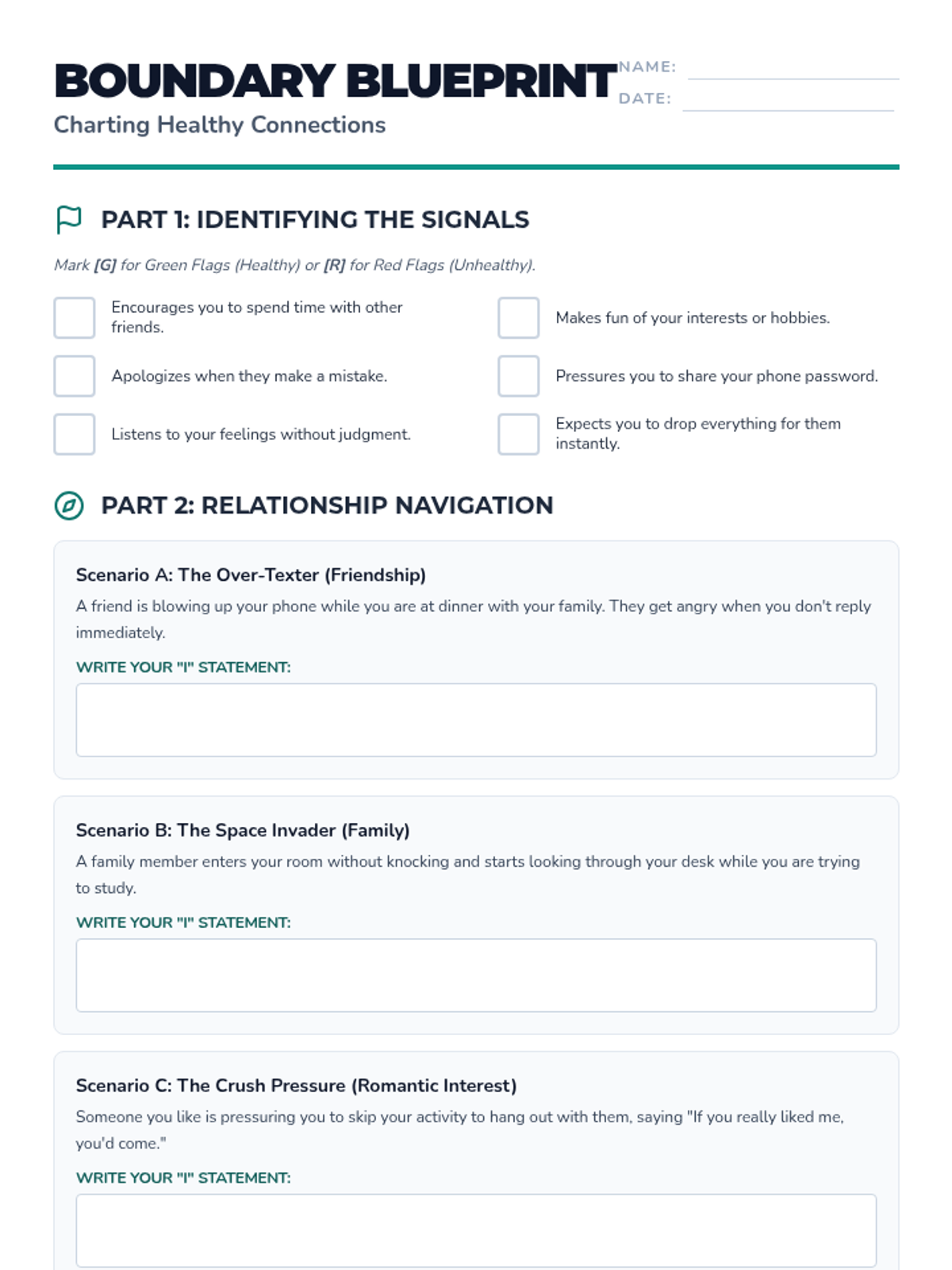 This lesson helps grade 7/8 students navigate the complexities of healthy relationships with friends, family, and early romantic interests through communication and boundary-setting.