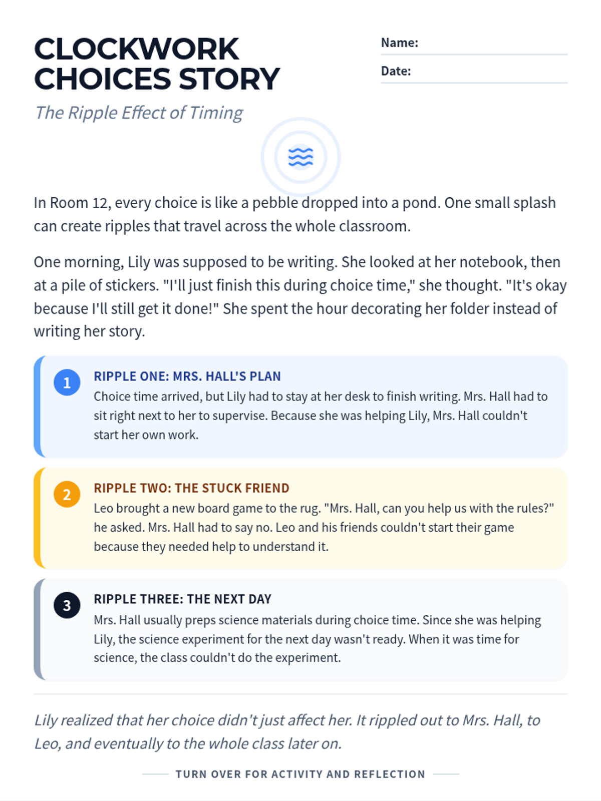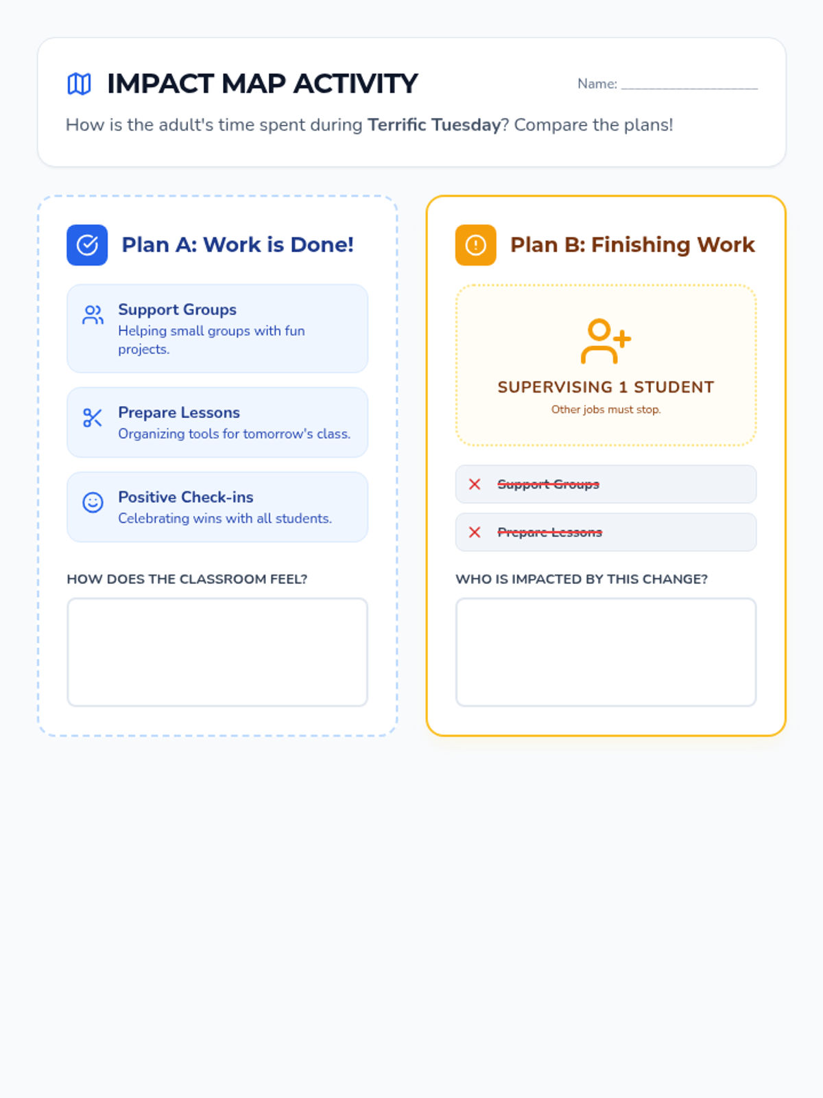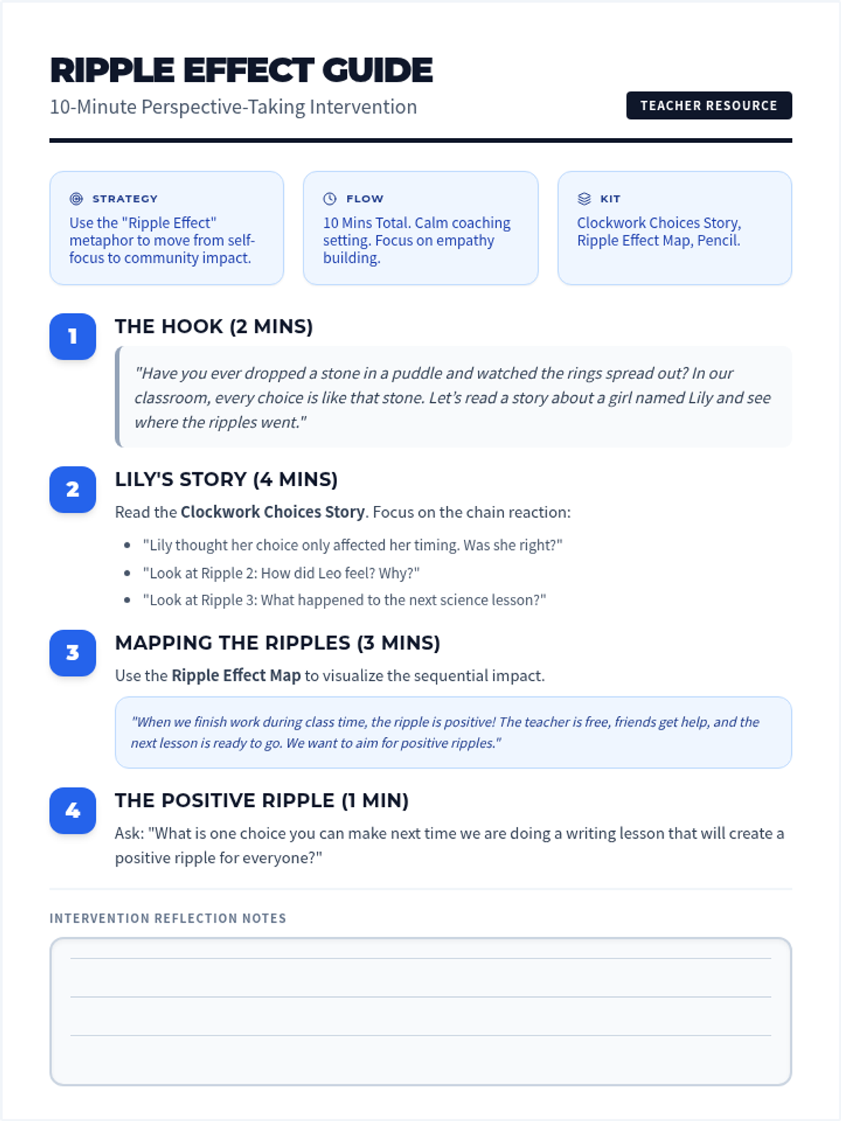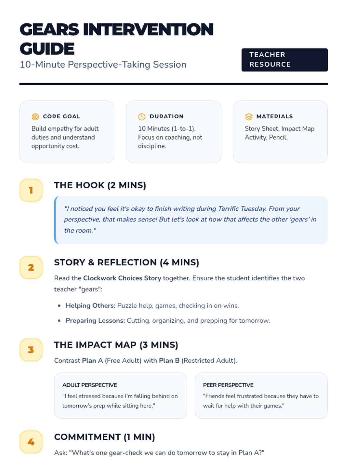 A 10-minute intervention focused on perspective-taking regarding task completion and its impact on classroom management and adult responsibilities.