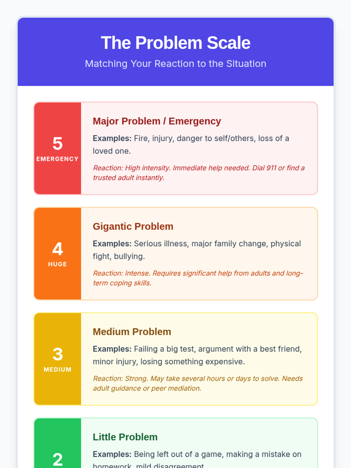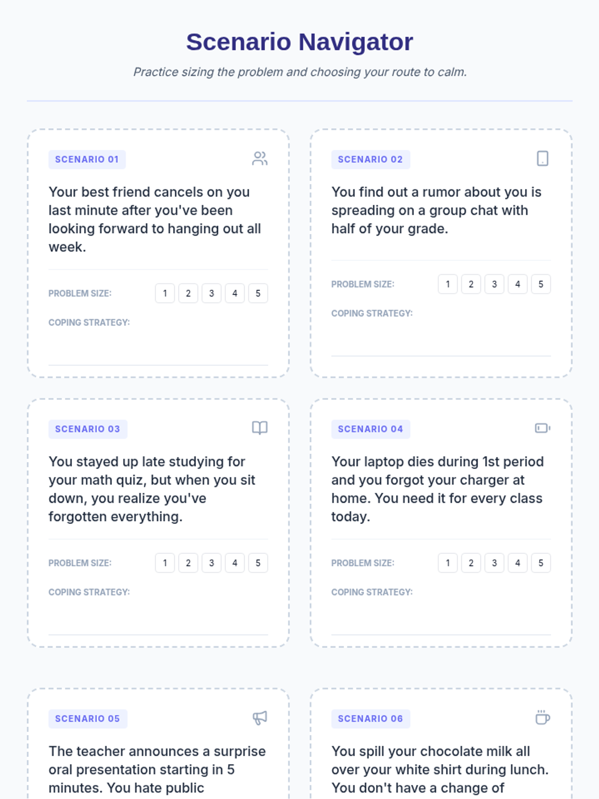 A lesson designed for 7th graders to identify the 'size' of their problems, match their emotional reactions accordingly, and build a toolkit of coping strategies for anxiety and stress.