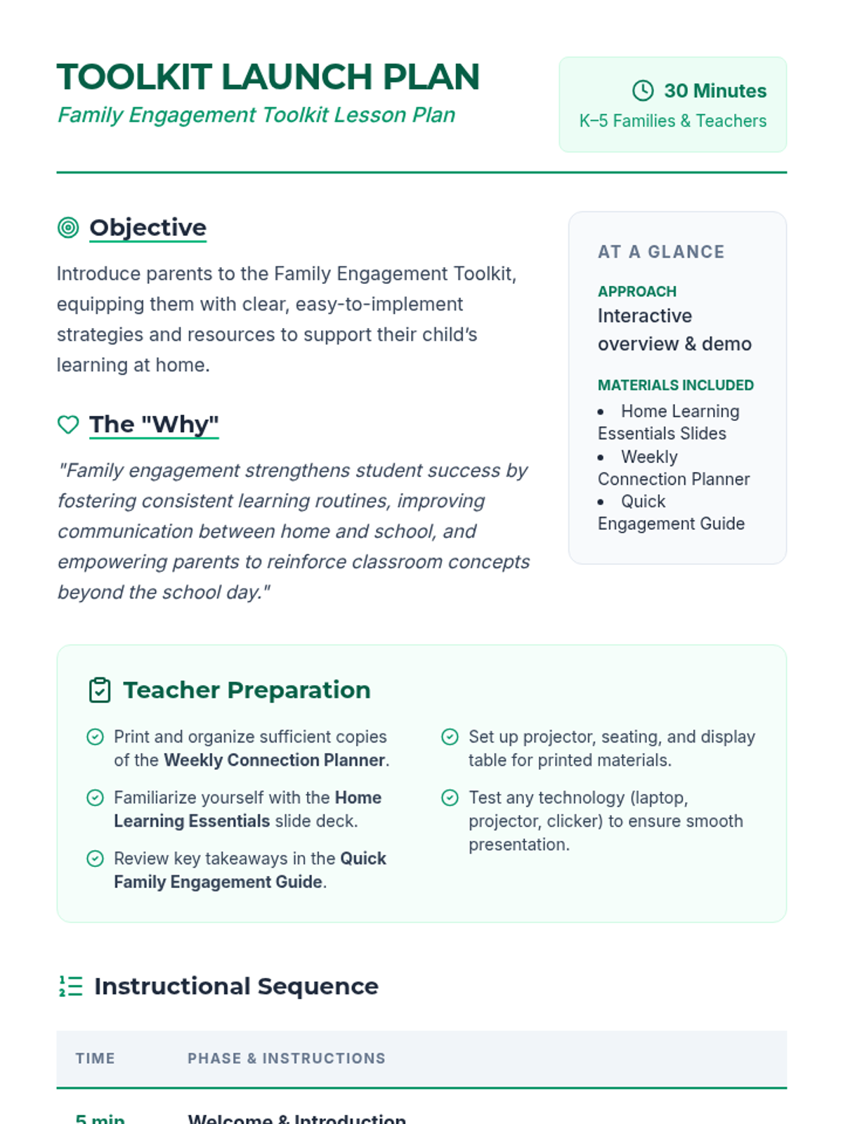 A 30-minute launch session for K-5 teachers to introduce families to a supportive toolkit for at-home learning, fostering strong home-school partnerships.