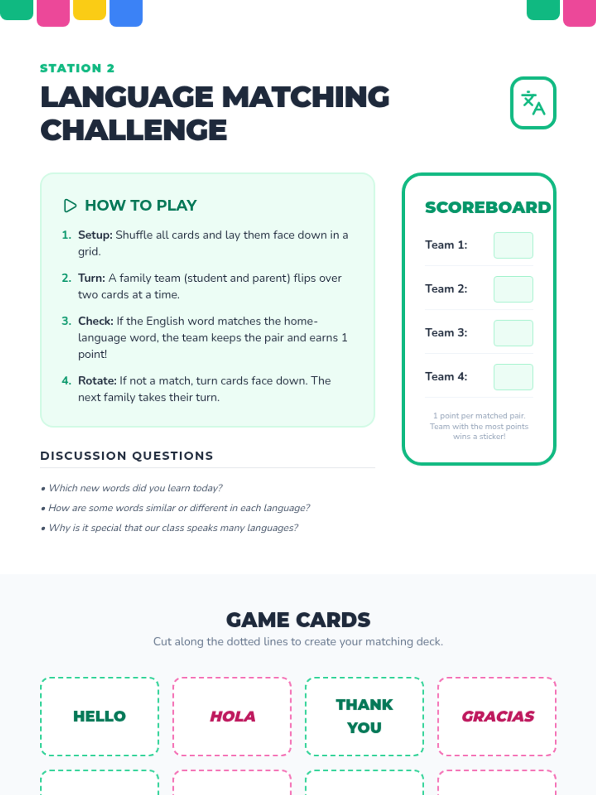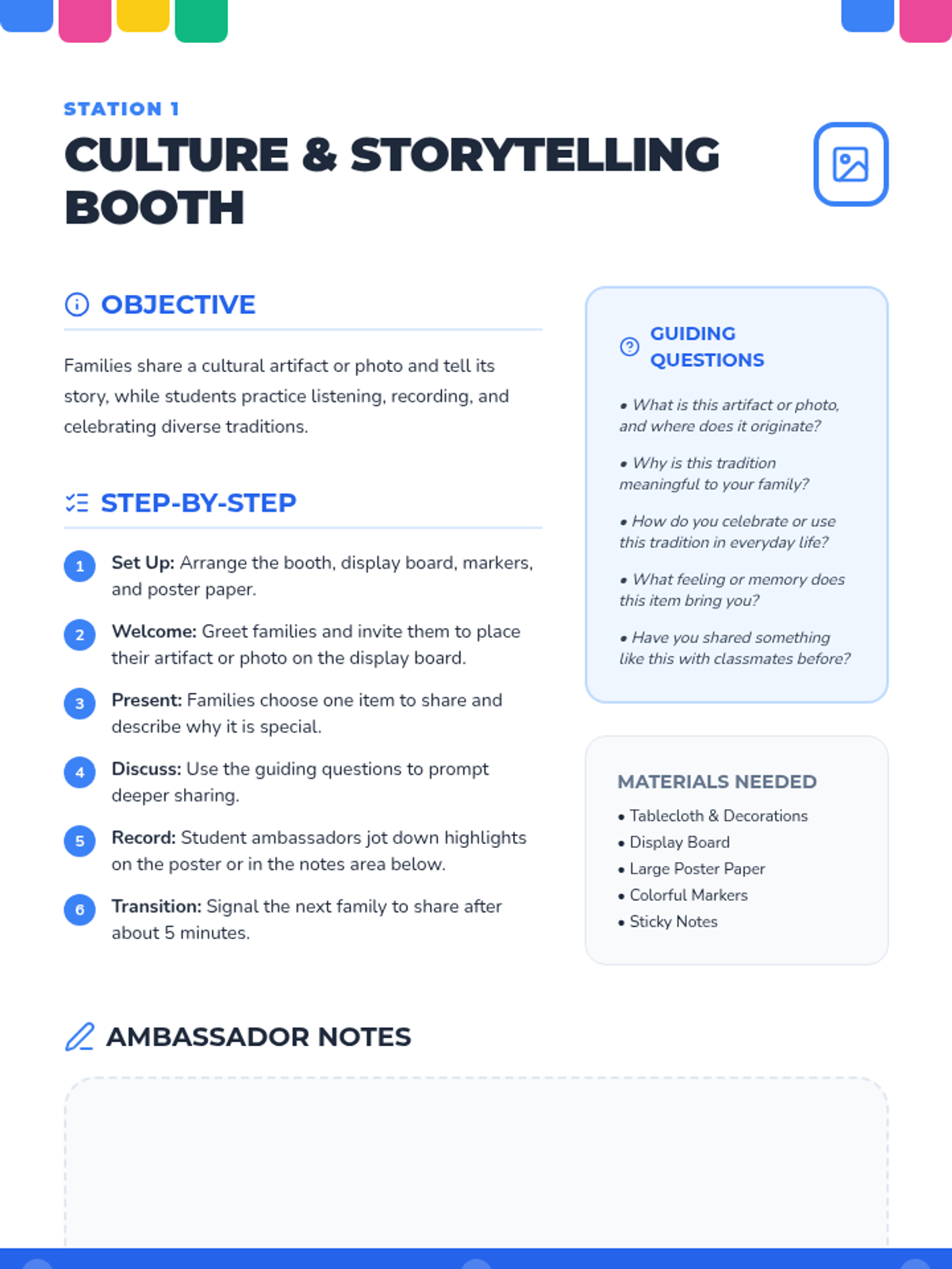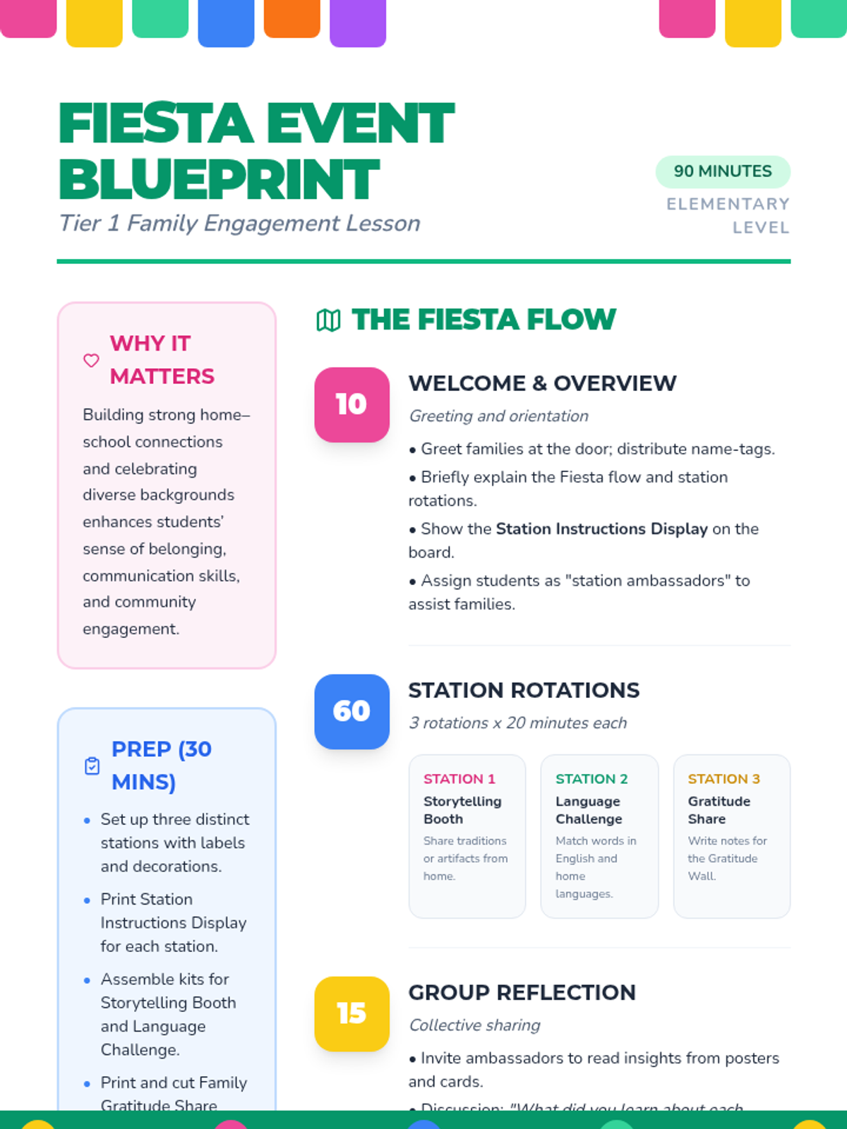 A vibrant, 90-minute classroom event designed to celebrate diverse family traditions, languages, and gratitude through interactive cultural stations.