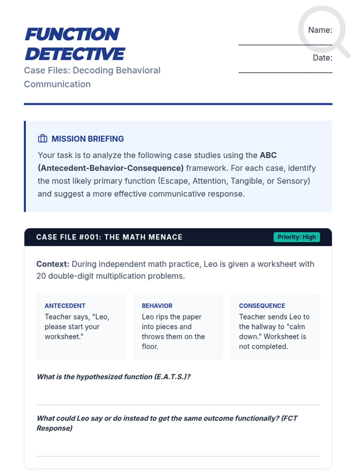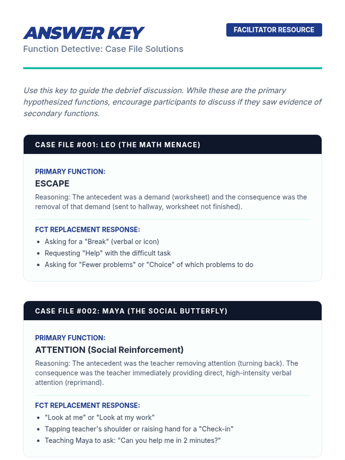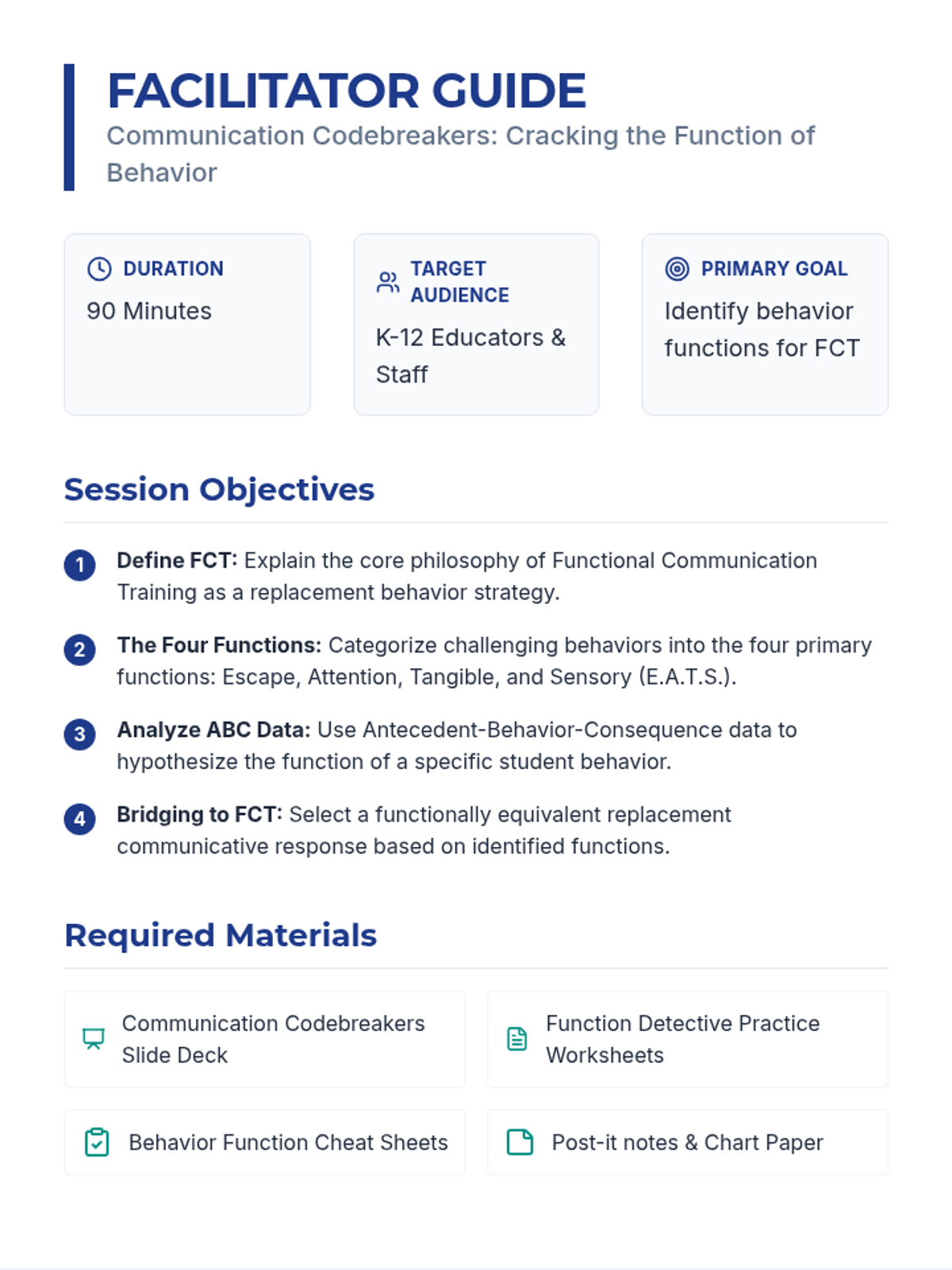 A professional development session designed to help educators identify the functions of behavior as a prerequisite for implementing Functional Communication Training (FCT).
