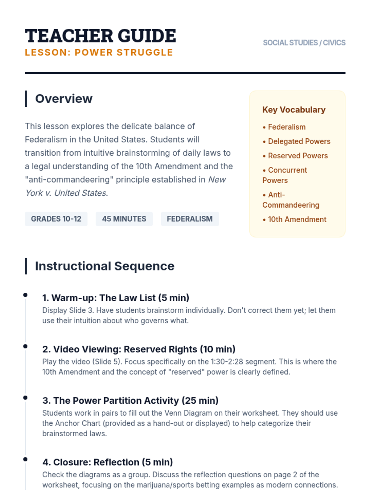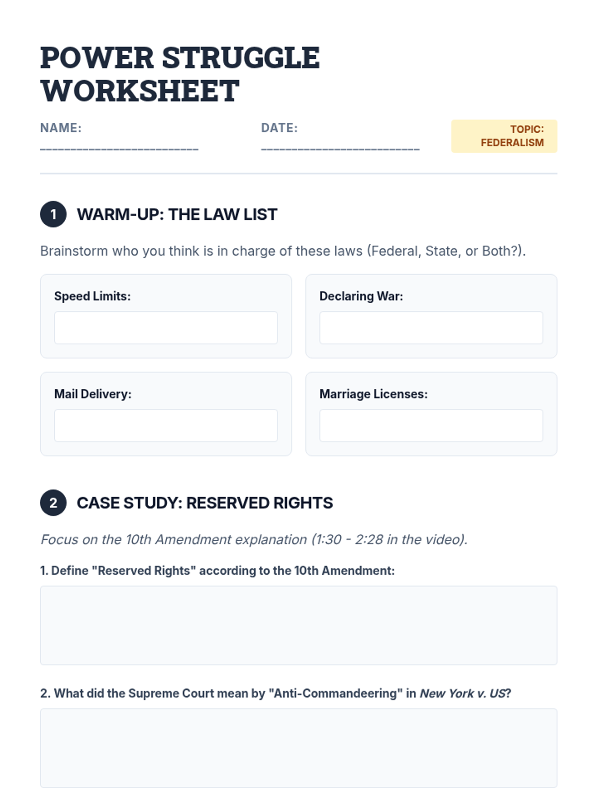 An exploration of Federalism and the 10th Amendment, focusing on the division of powers between federal and state governments through the lens of New York v. United States.