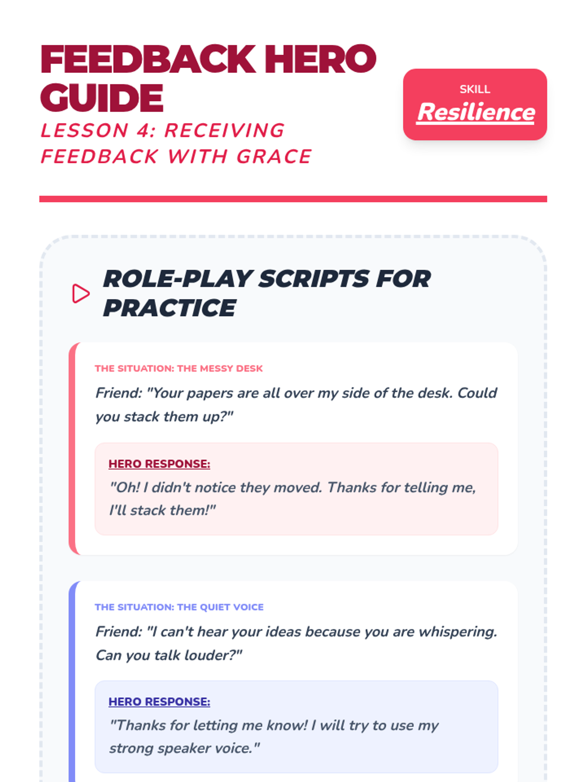 Focuses on the emotional resilience needed to receive feedback gracefully and use it for improvement.