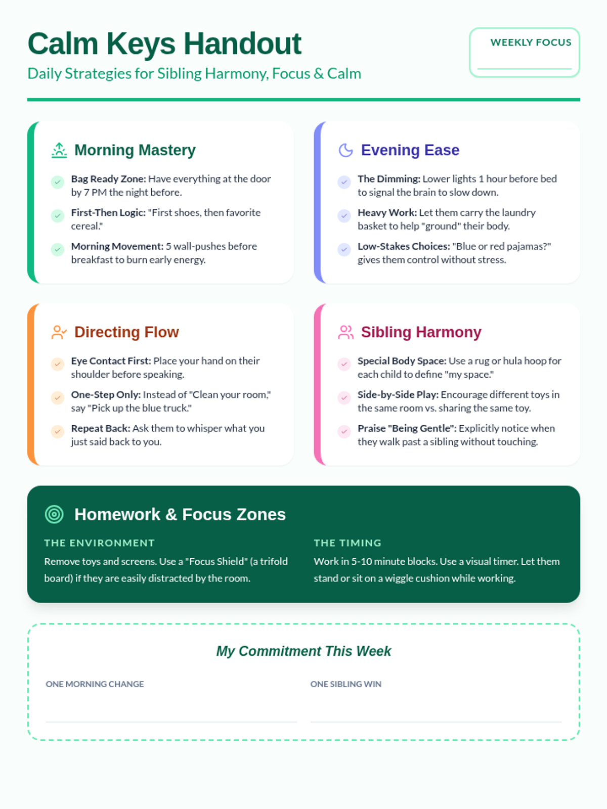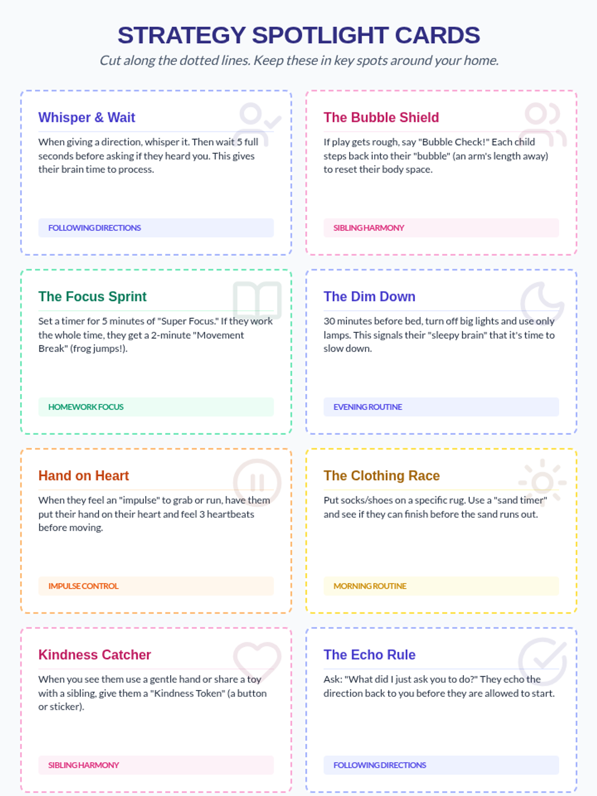 A comprehensive set of resources for parents of hyperactive kindergarteners, focusing on practical behavioral strategies for home routines, impulsivity, and focus.