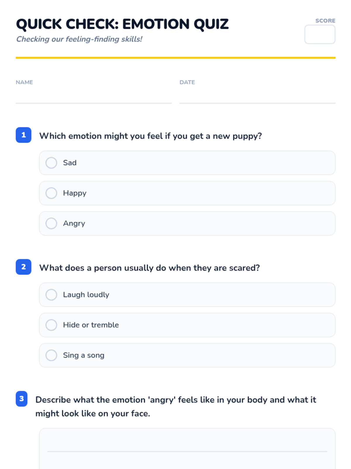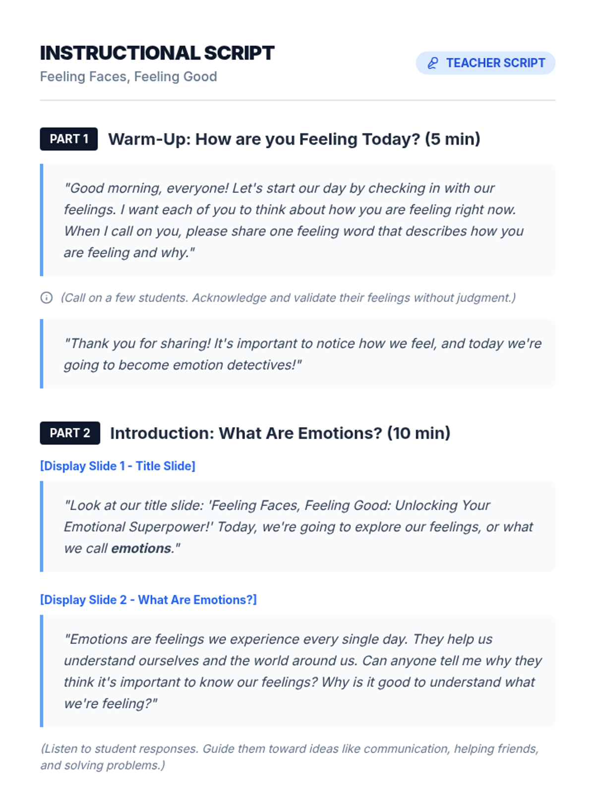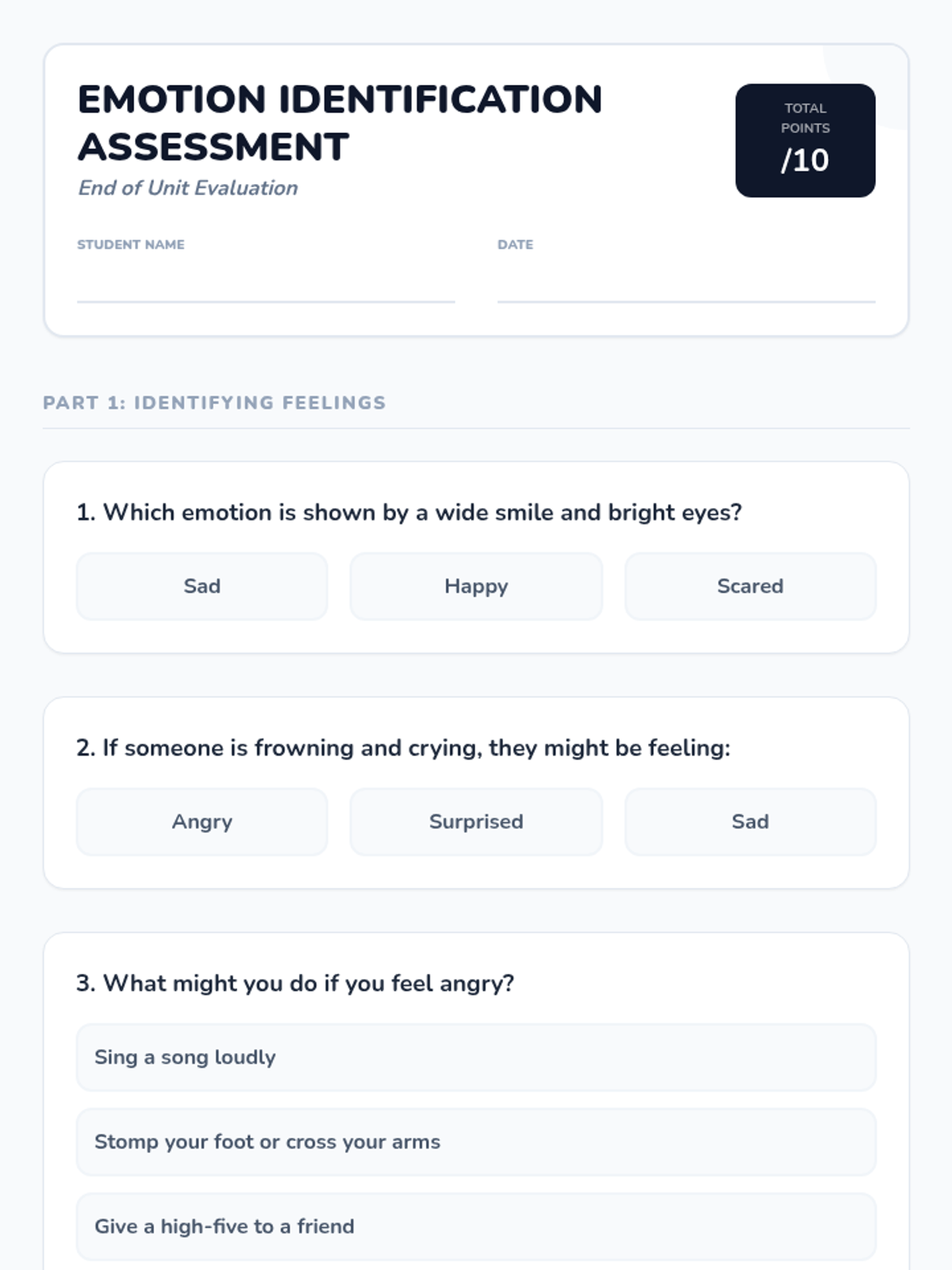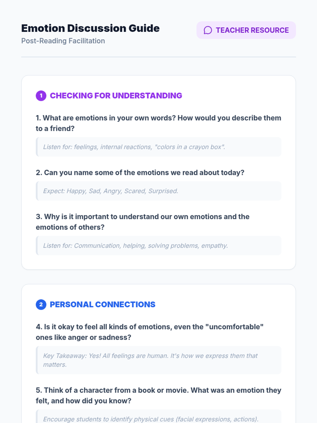 A comprehensive 60-minute lesson designed for elementary students to identify and understand primary emotions, fostering empathy and self-awareness through interactive games, discussions, and creative projects.