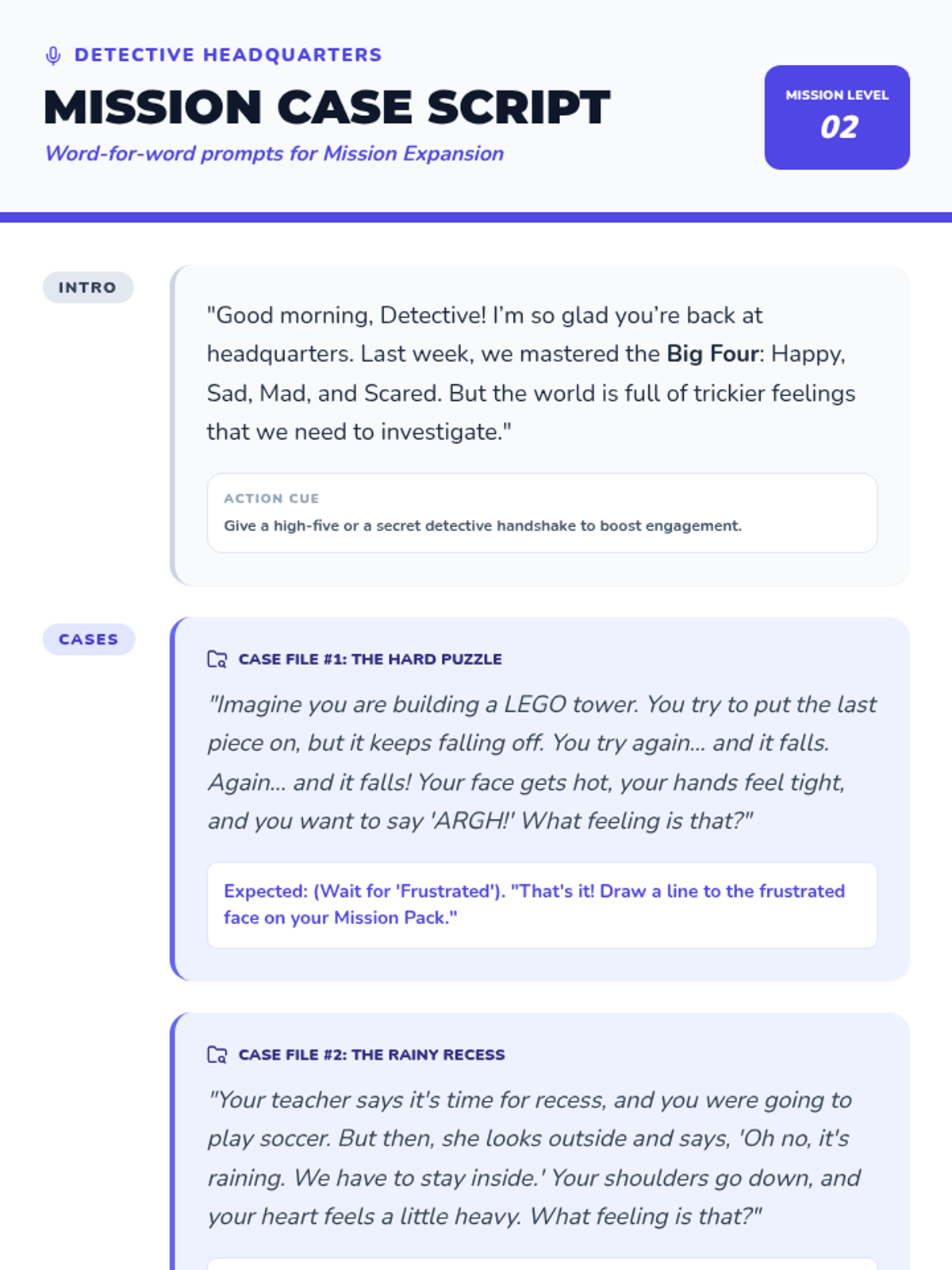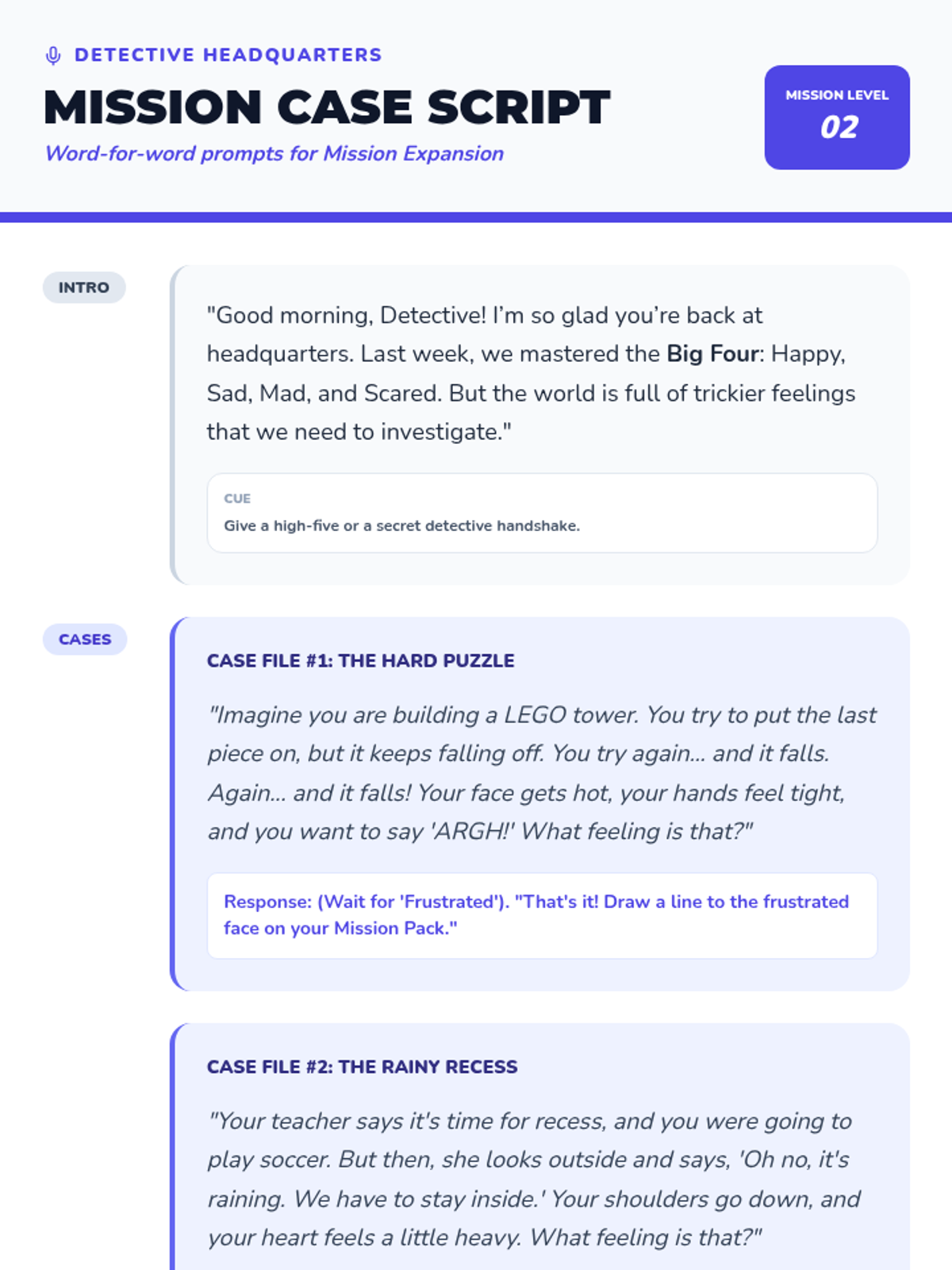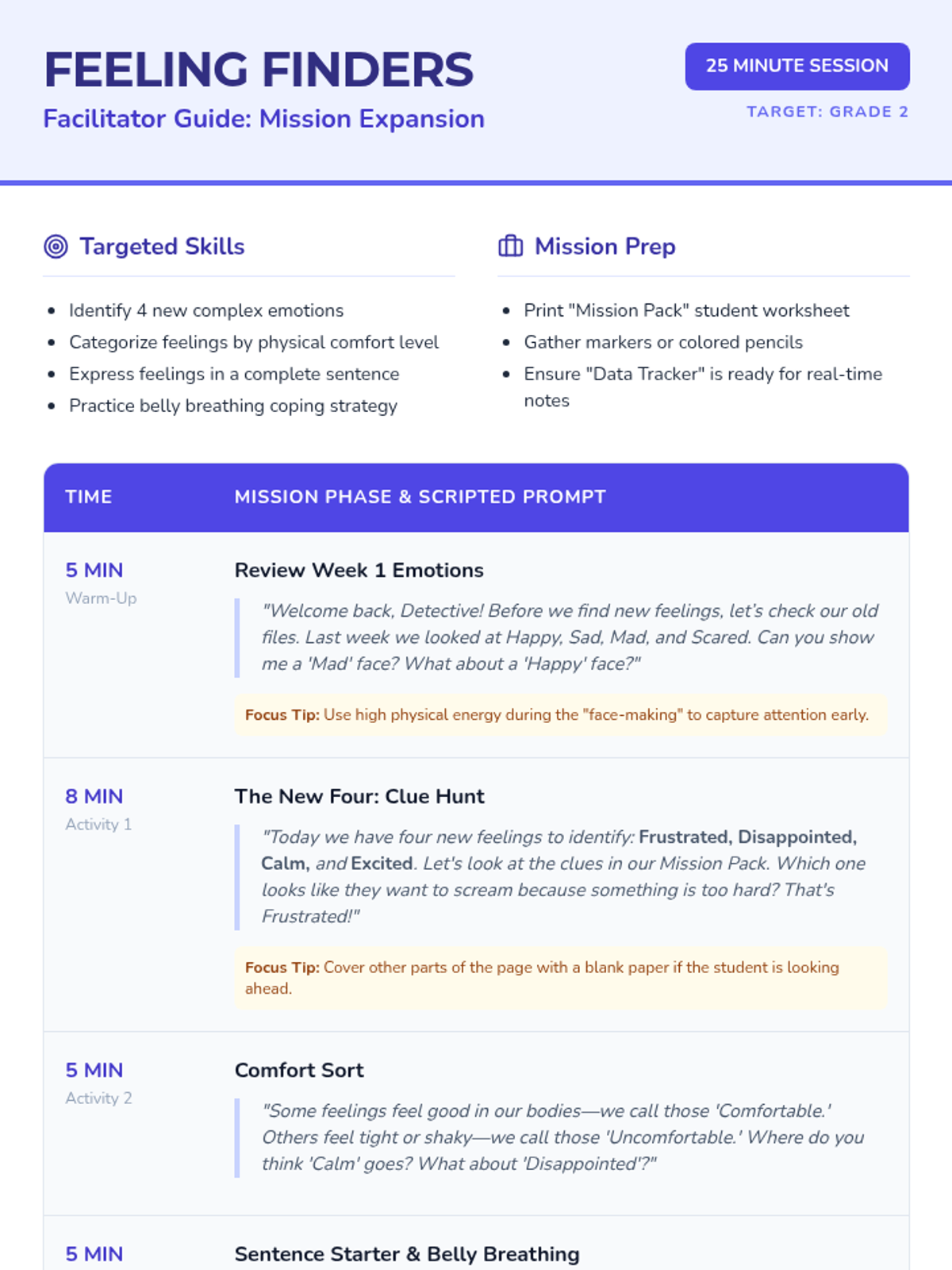 A 25-minute lesson for 2nd graders to expand their emotion vocabulary, focusing on identifying frustrated, disappointed, calm, and excited, and learning to sort emotions by comfort level.