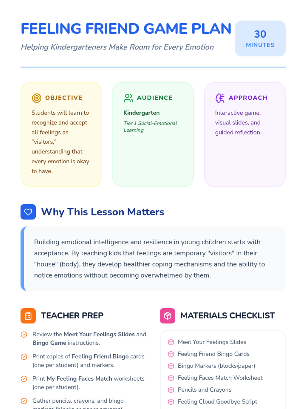 A gentle introduction to emotional literacy for kindergarteners, teaching them that all feelings are welcome visitors and showing them how to 'make room' for big emotions.