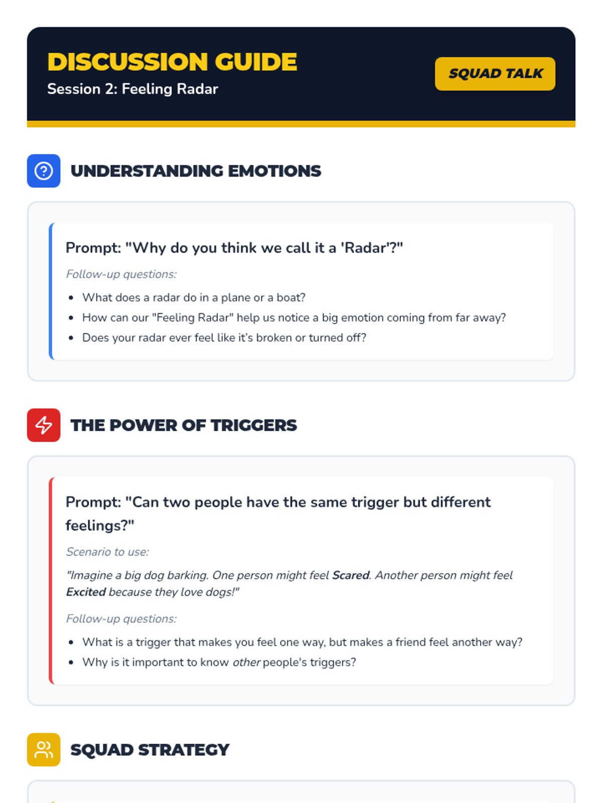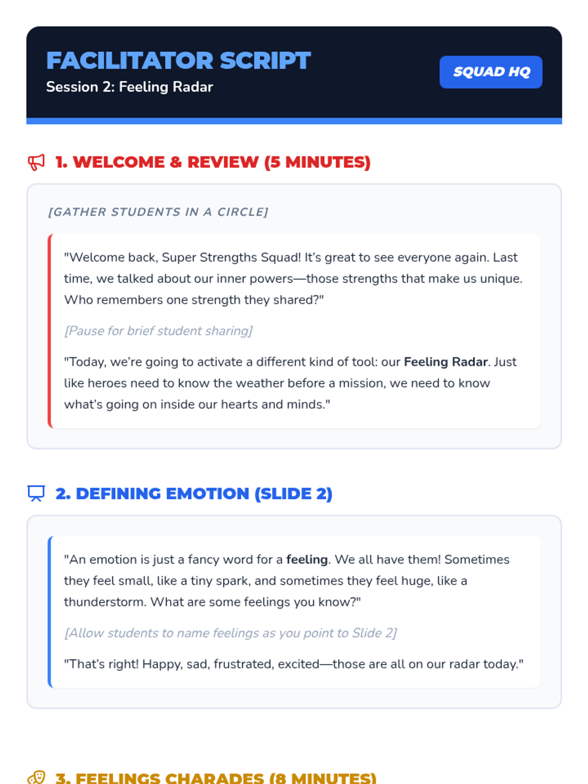 A small group activity focused on identifying and categorizing emotions into the four color zones (Blue, Green, Yellow, and Red). Students will practice recognizing body signals and feelings to improve self-awareness and regulation.