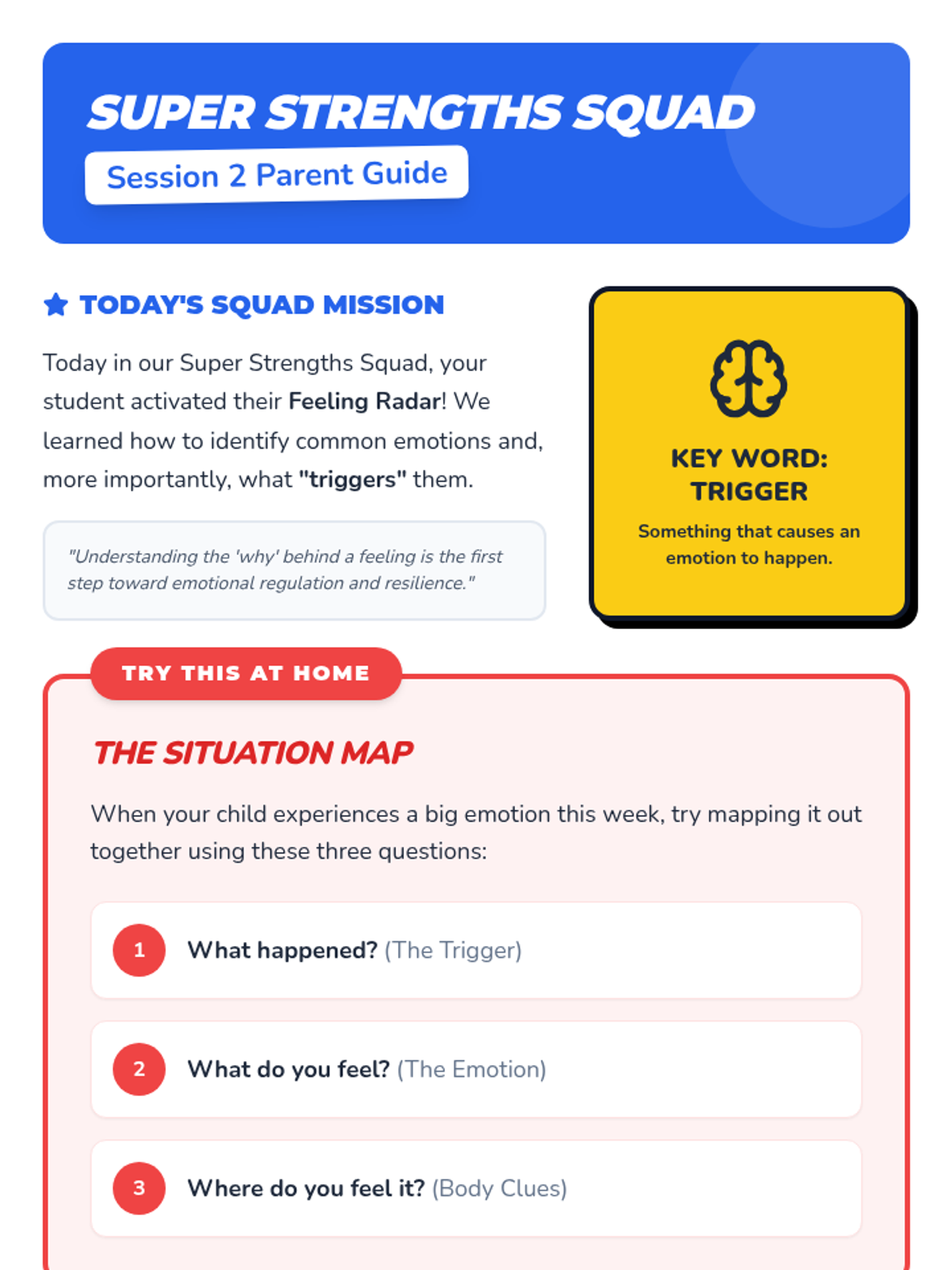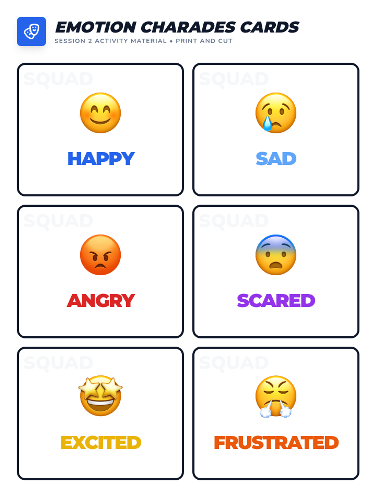 Students learn to identify and name common feelings and recognize what situations (triggers) cause those emotions. This session uses charades and mapping to build emotional literacy.