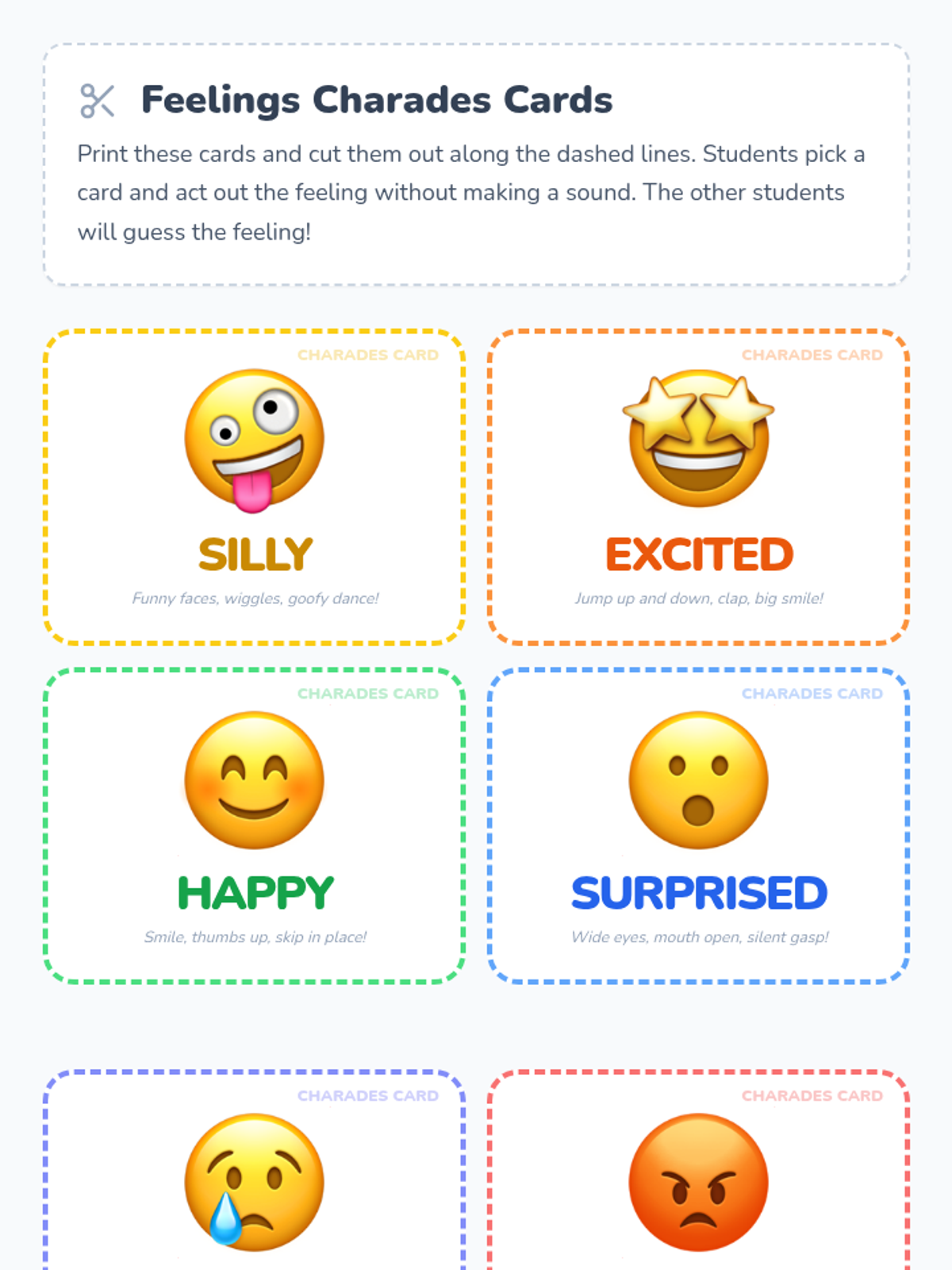 Students will explore 'emotion families' to expand their vocabulary beyond basic feeling words. They will analyze picture scenes to identify nuanced emotions and sort various feeling words into appropriate categories.