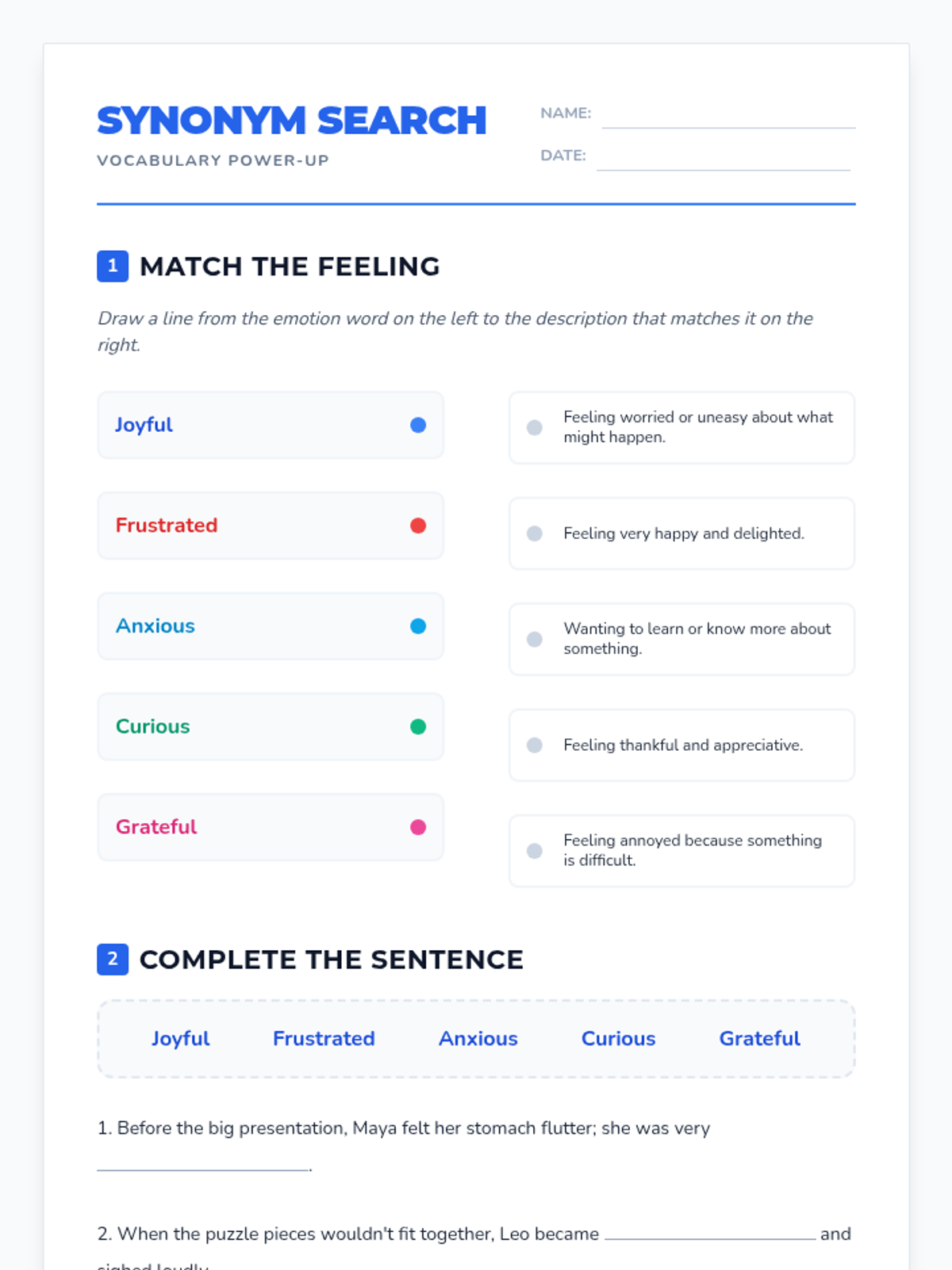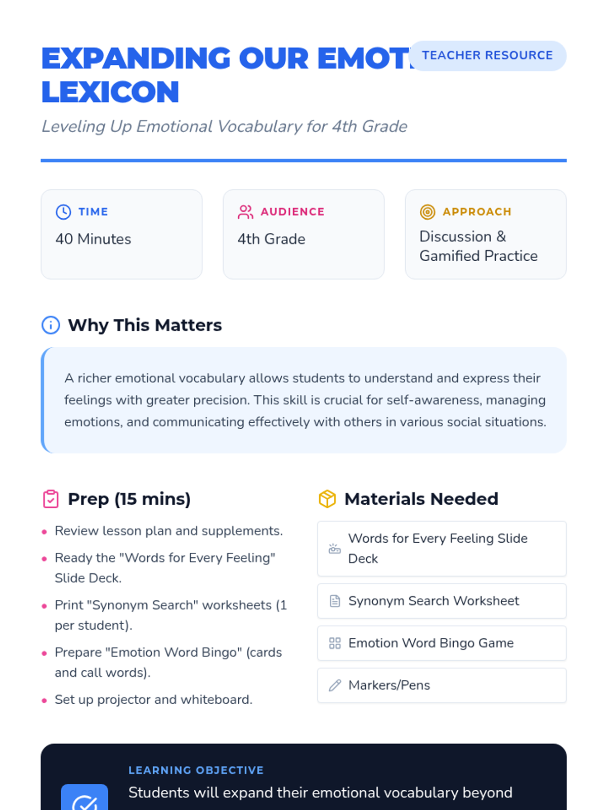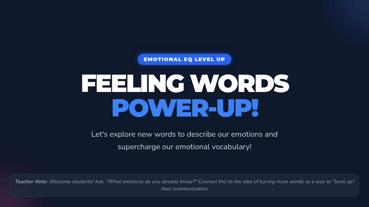 Students expand their emotional vocabulary beyond basic terms like 'happy' and 'sad' to improve their ability to articulate complex inner experiences and communicate effectively.