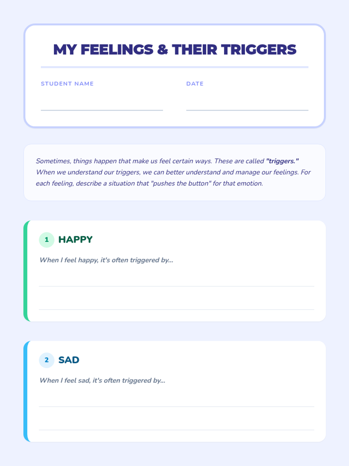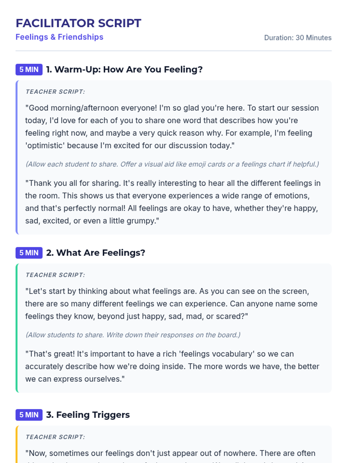 A 30-minute Tier 2 group lesson for 5th graders focused on understanding feelings, identifying triggers, using coping strategies, and practicing peer communication.
