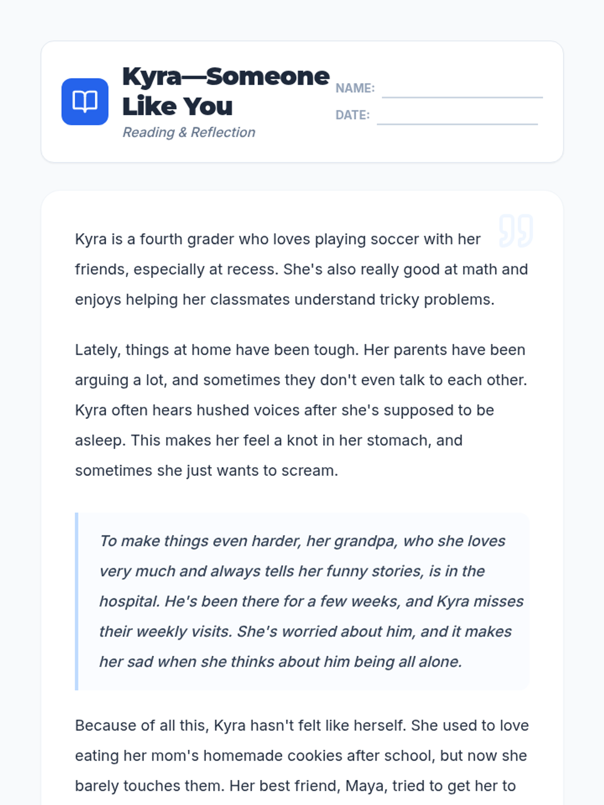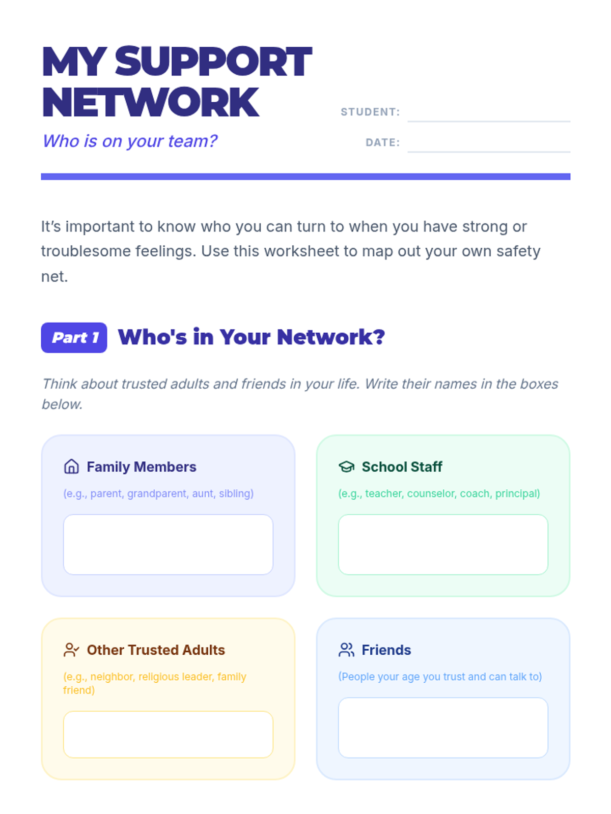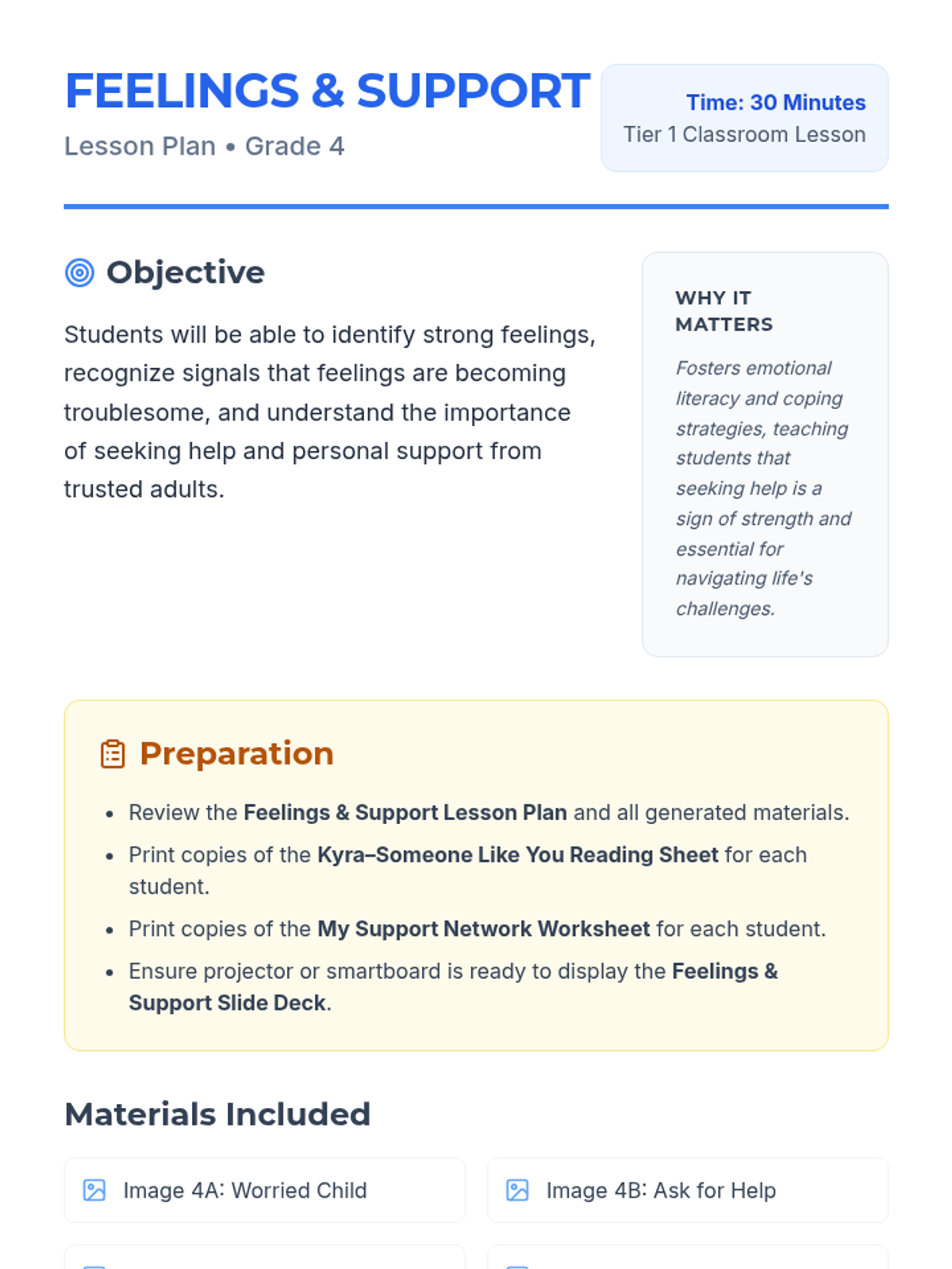 A 30-minute social-emotional learning lesson for 4th graders to help them identify strong feelings, recognize when they become troublesome, and build a personal support network.