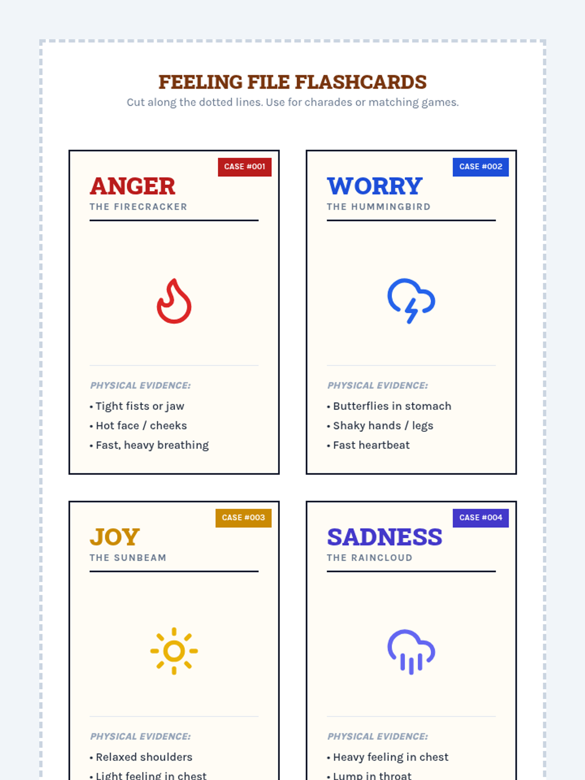 A 35-minute lesson for 4th graders to explore self-awareness by identifying emotions and the physical sensations that accompany them through a 'Detective' lens.