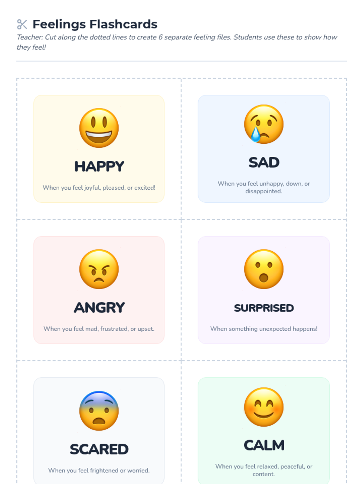 A collection of resources to help kindergarteners develop emotional regulation skills, specifically targeting academic frustration and jealousy. Includes parent guidance and child-friendly visual aids.