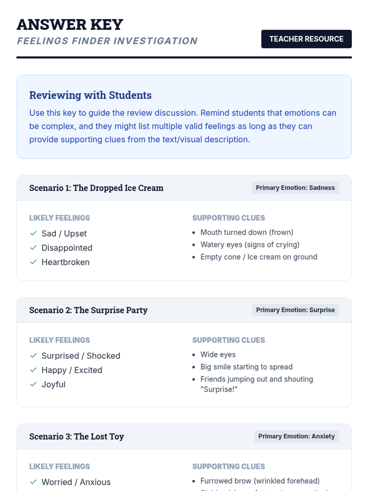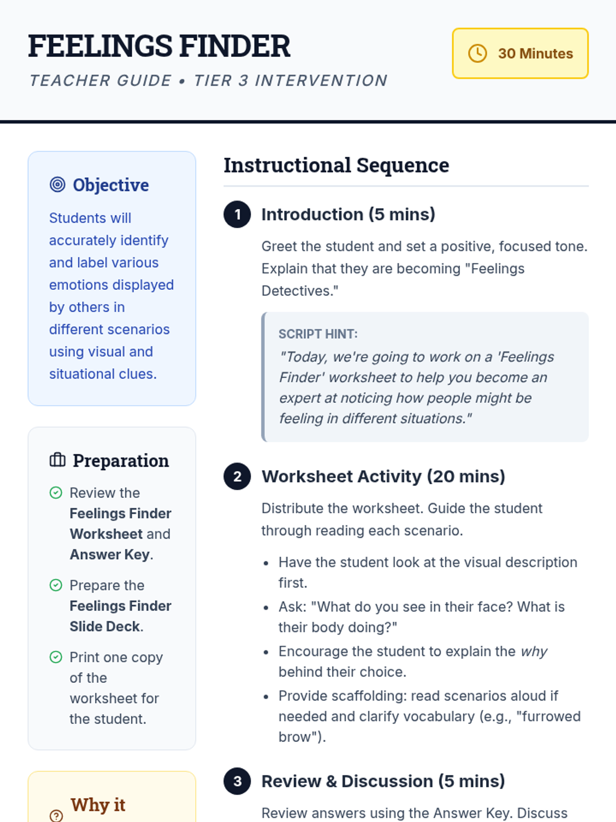 A Tier 3 social-emotional intervention for 4th-grade students focused on identifying emotions through facial expressions, body language, and situational context.