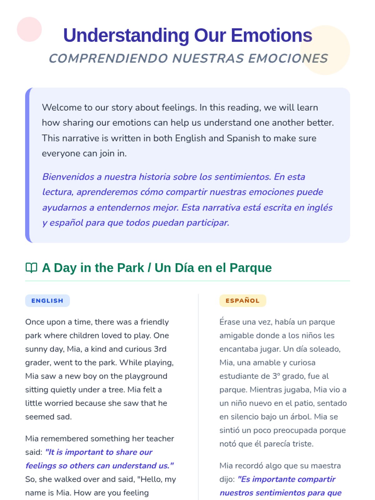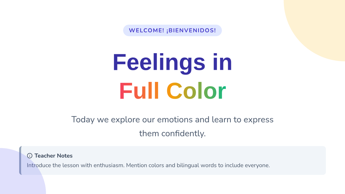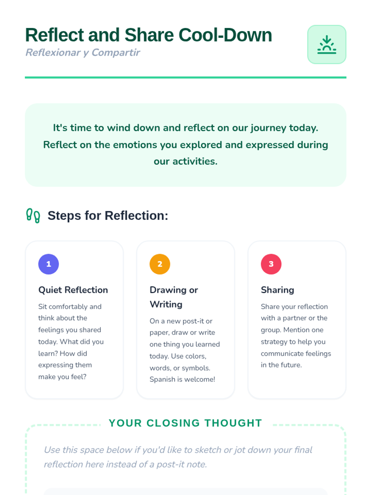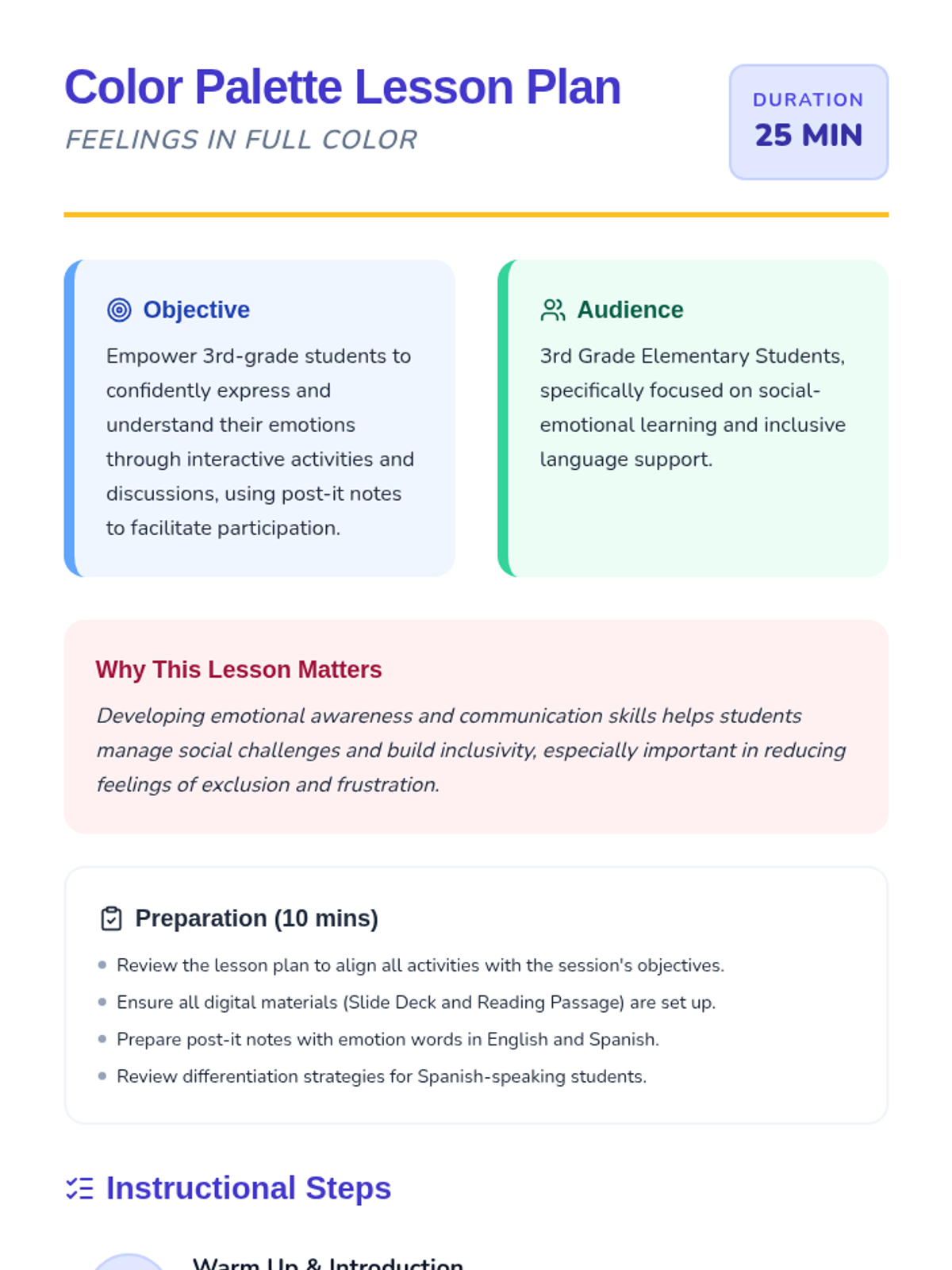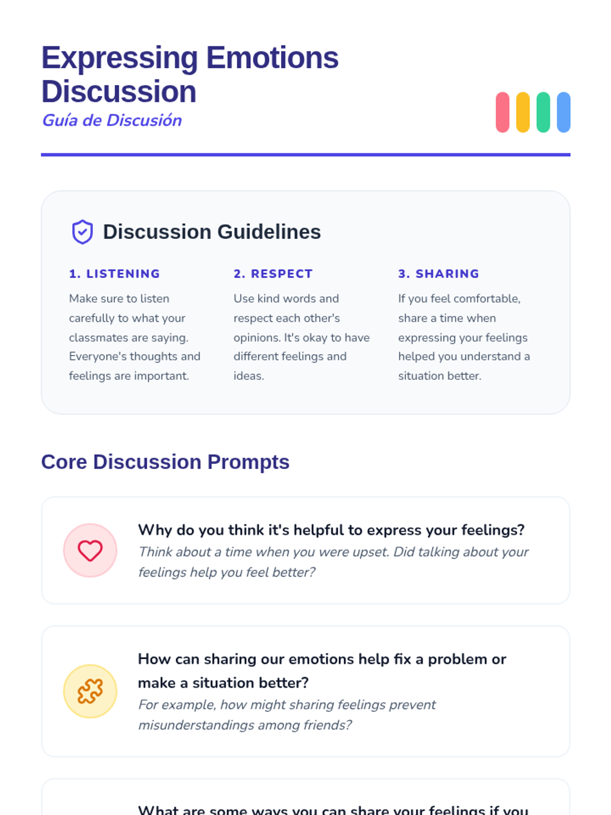 This lesson empowers 3rd-grade students to confidently express their emotions in social situations through bilingual support and interactive post-it note activities. It addresses social exclusion and conflict resolution by teaching students how to articulate feelings in both English and Spanish.