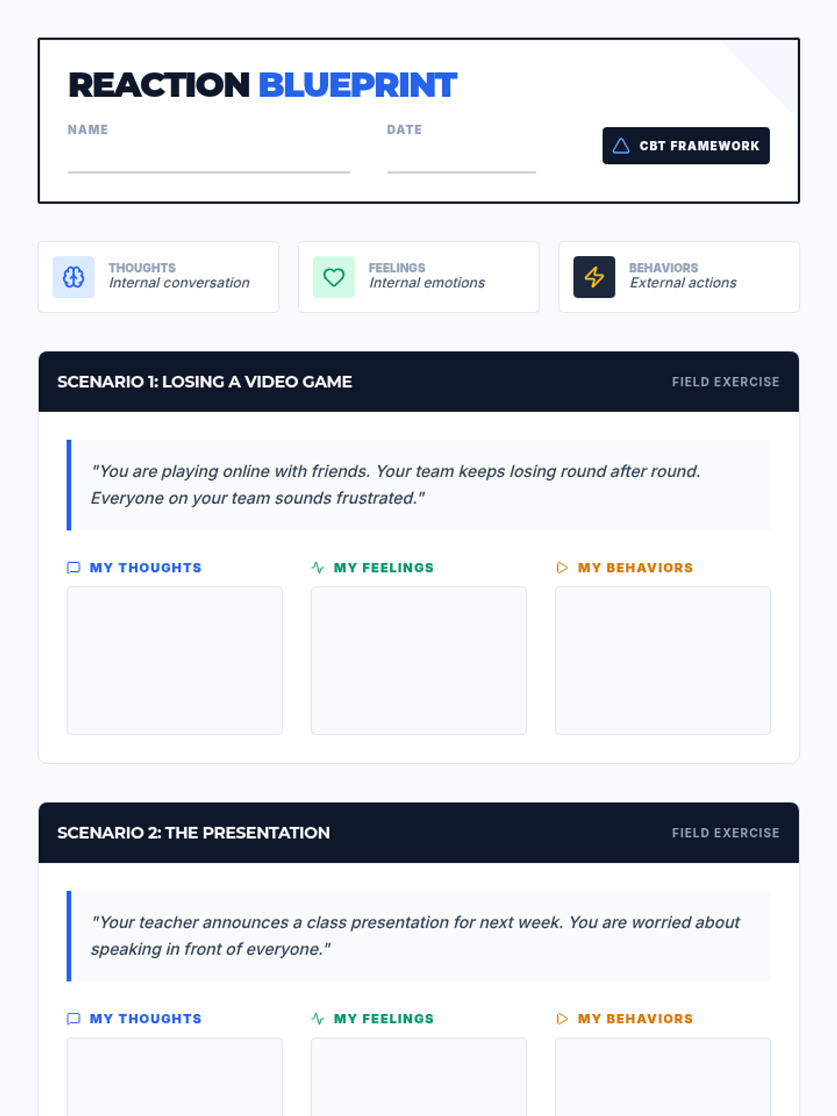 Teaches emotional regulation through the Notice-Name-Breathe method and building a resilience toolkit.